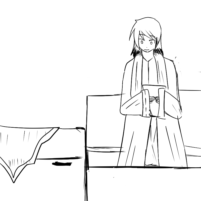 Artemis groans and opens his eyes. His entire body aches all over, especially his left arm. He turns over to his good arm and looks around. The first thing he notices is that it's night already. The second thing he notices is a girl sitting in front of him holding his blade. "Rair myl jhoji si shadi ci shalaer..."