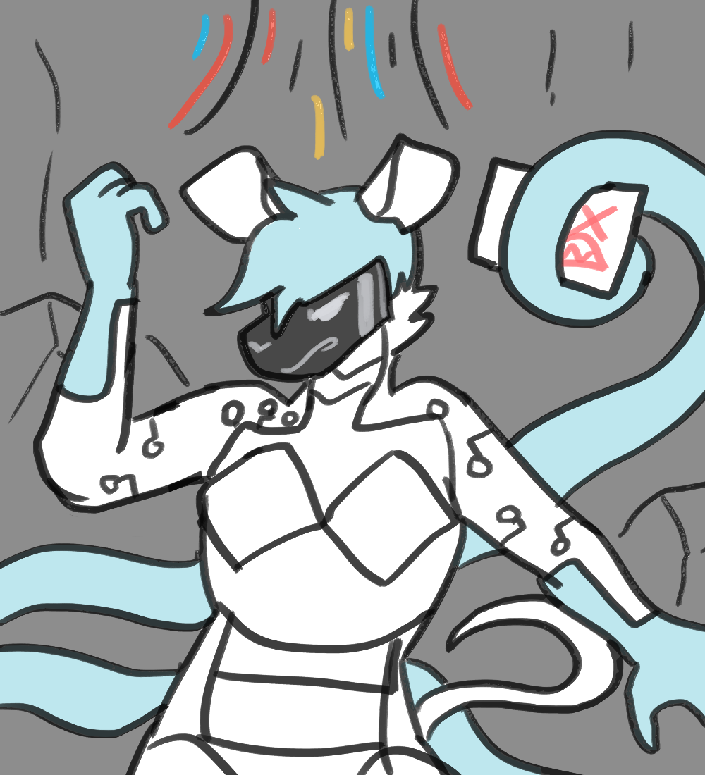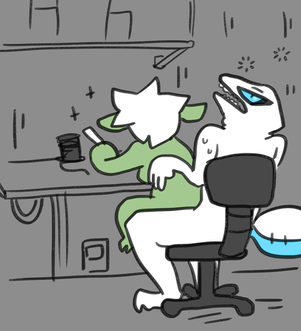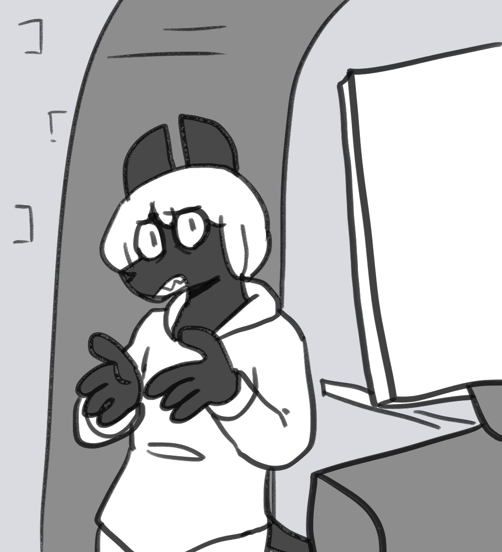 The top heavy shrimp is working furiously at her desk when the robot enters the room. She does not notice its approach until it speaks.