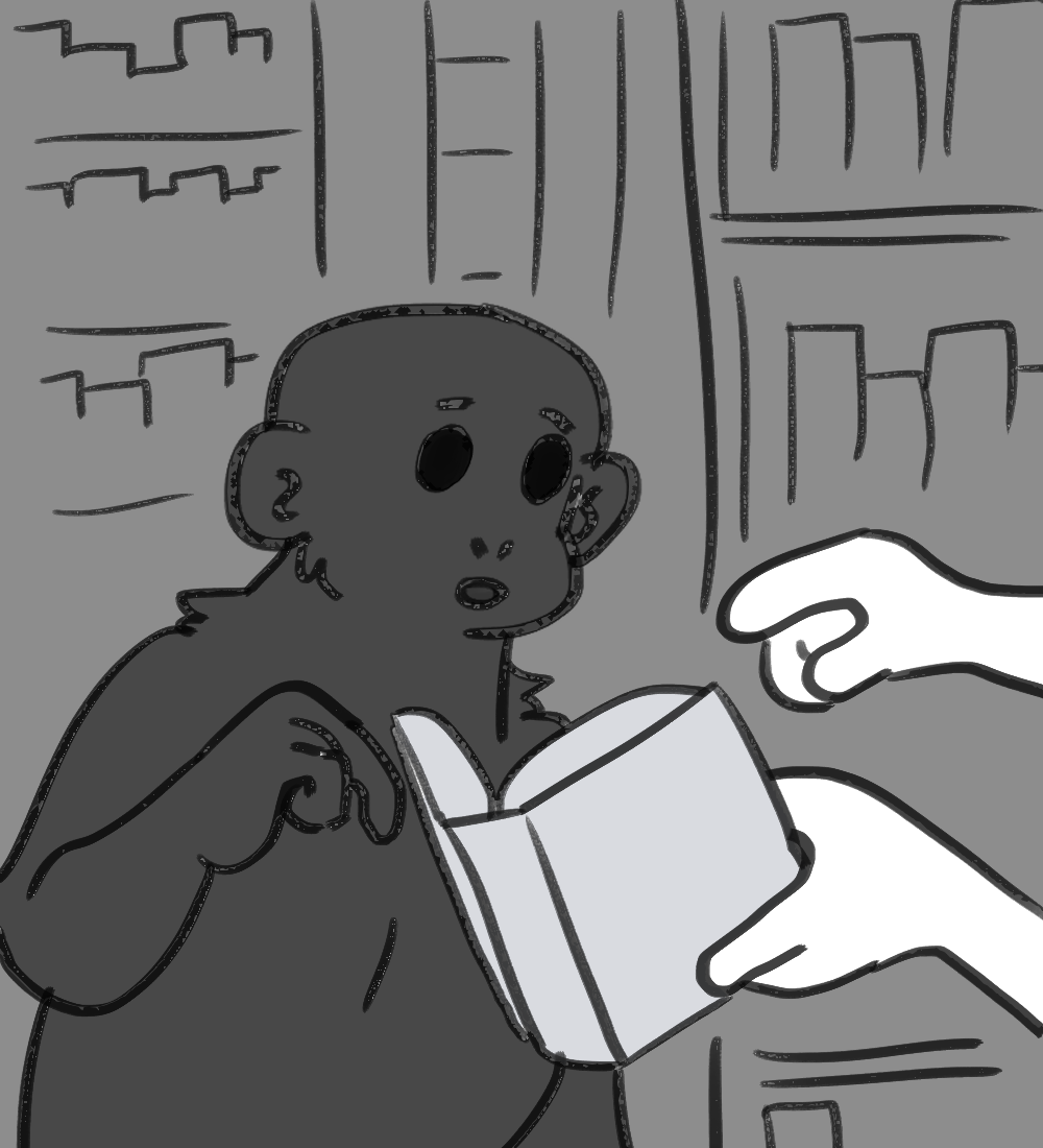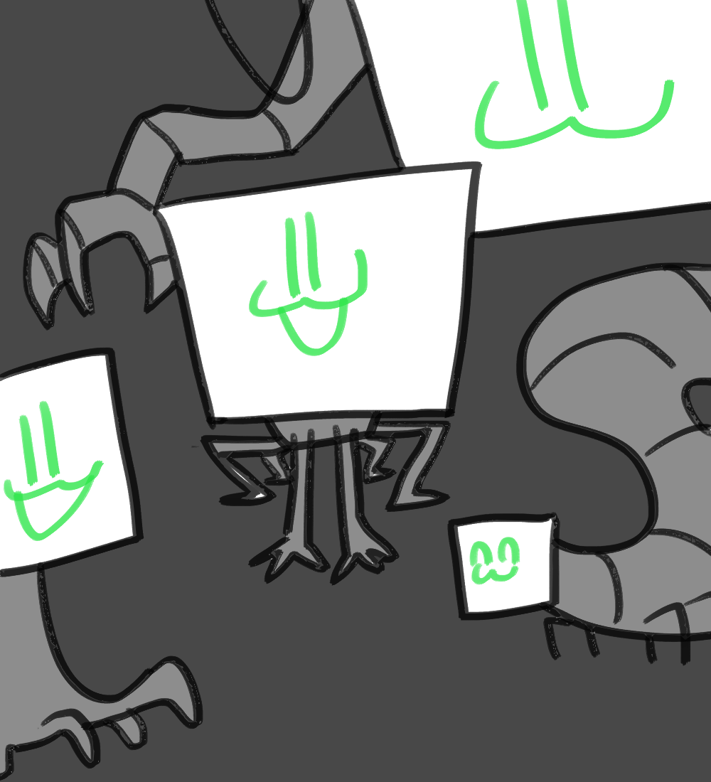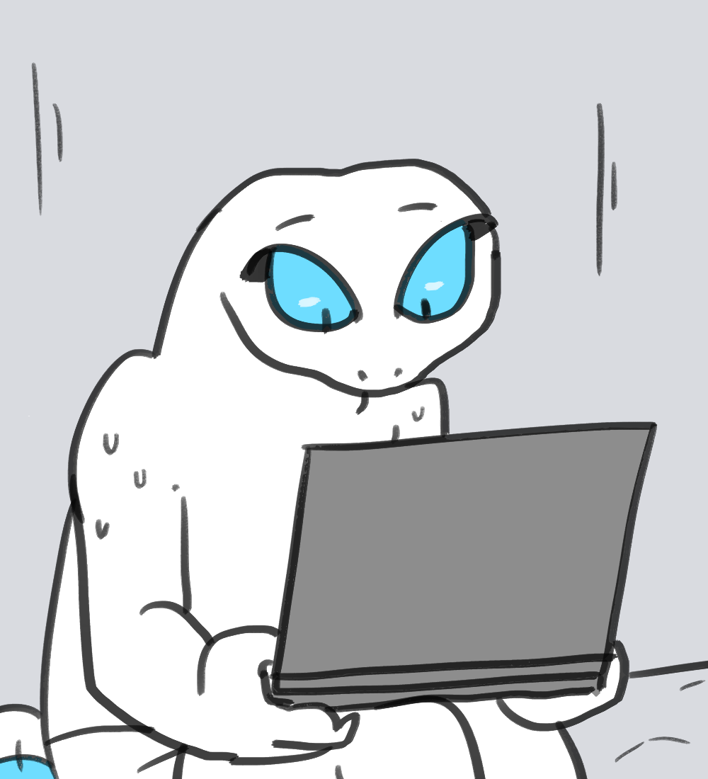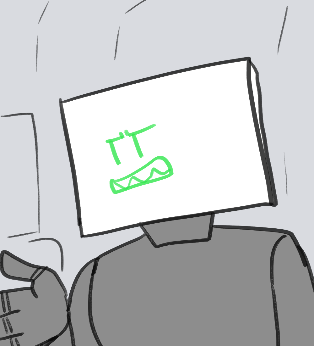The top heavy shrimp is working furiously at her desk when the robot enters the room. She does not notice its approach until it speaks.