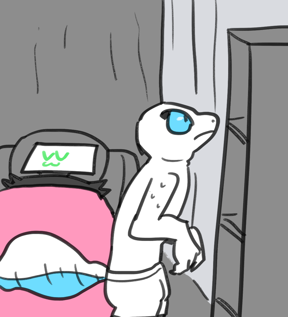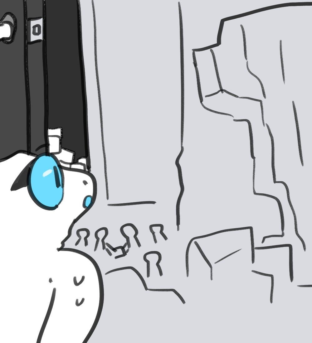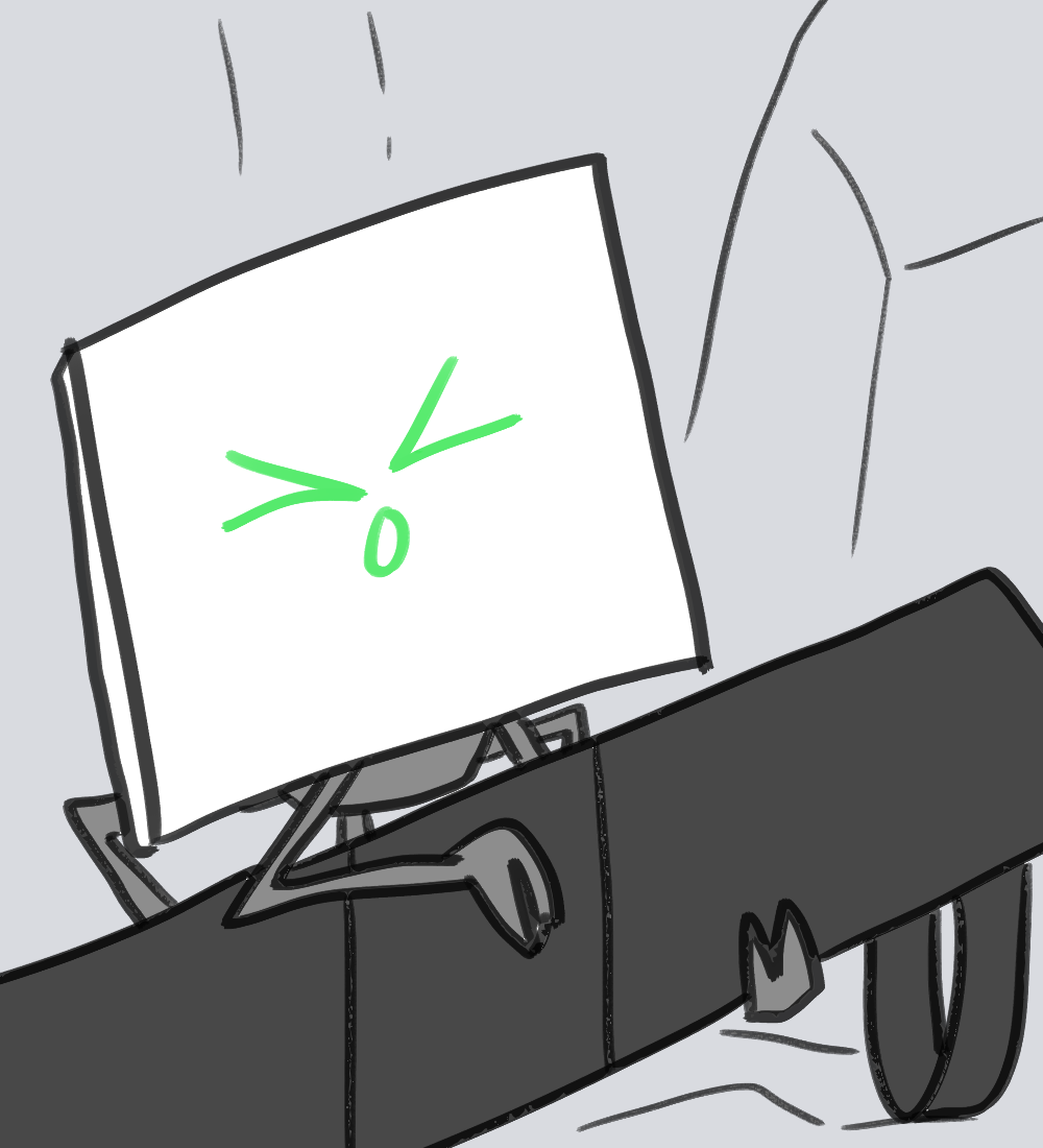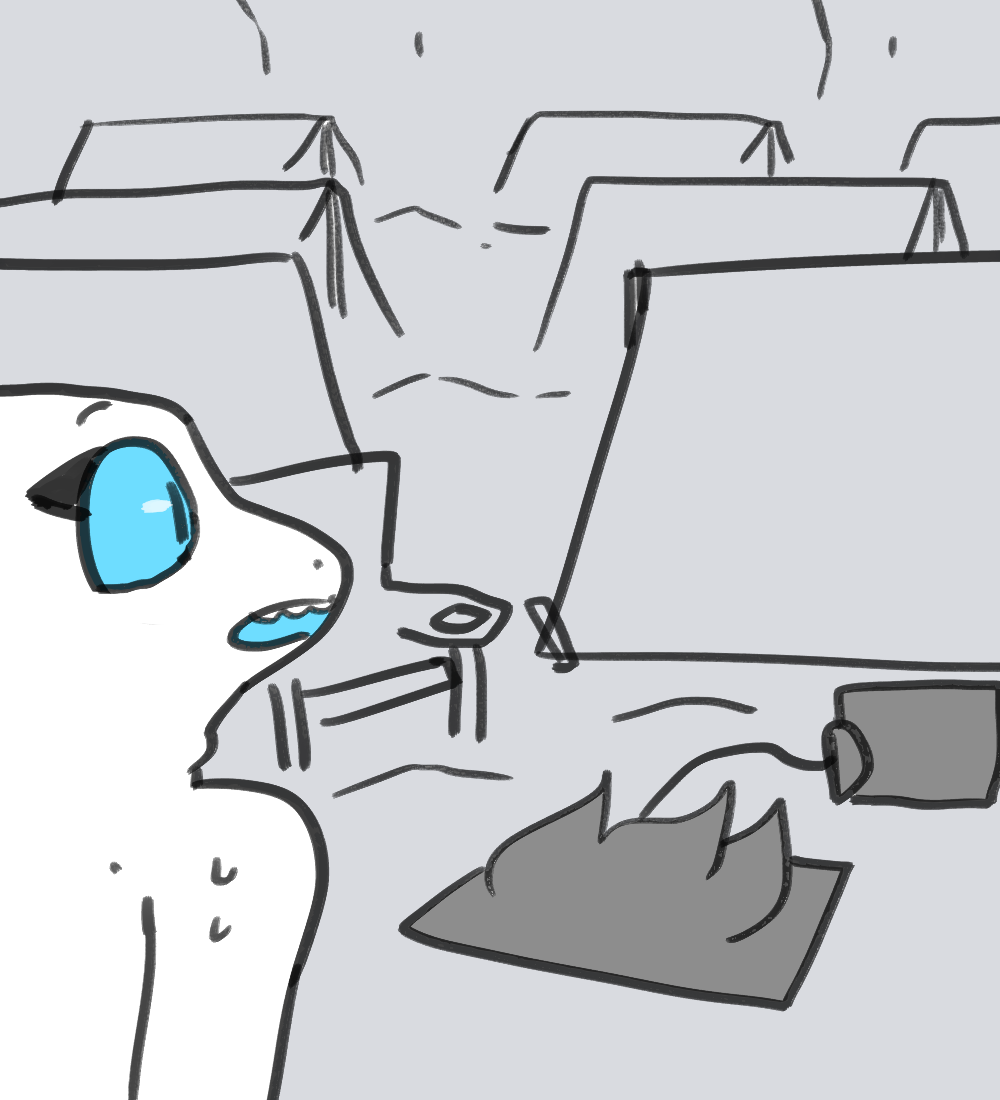 Chuck leans against the cubicle wall with a groan. Office work is stressful. Only two logs left, luckily these ones look shorter.