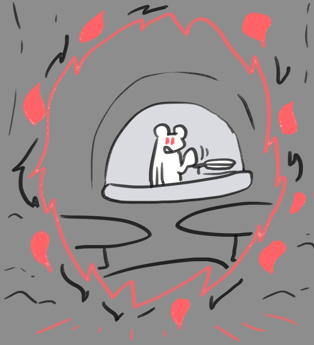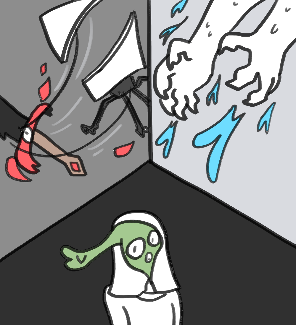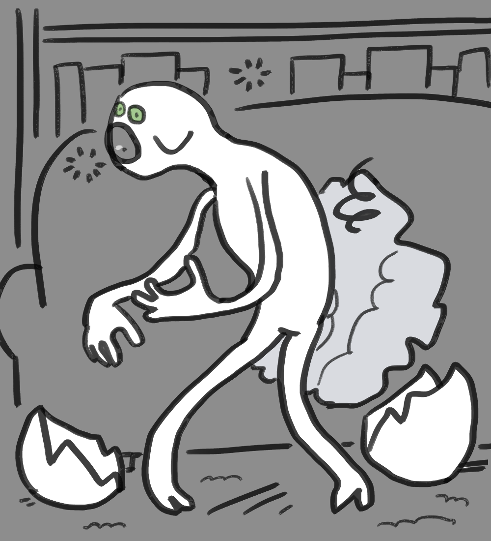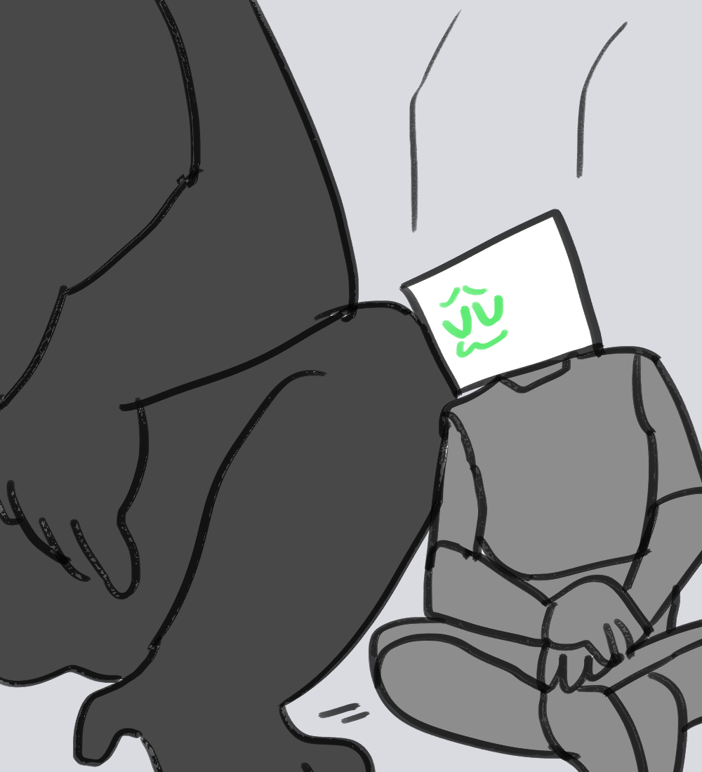 Chuck leans against the cubicle wall with a groan. Office work is stressful. Only two logs left, luckily these ones look shorter.