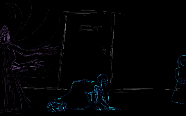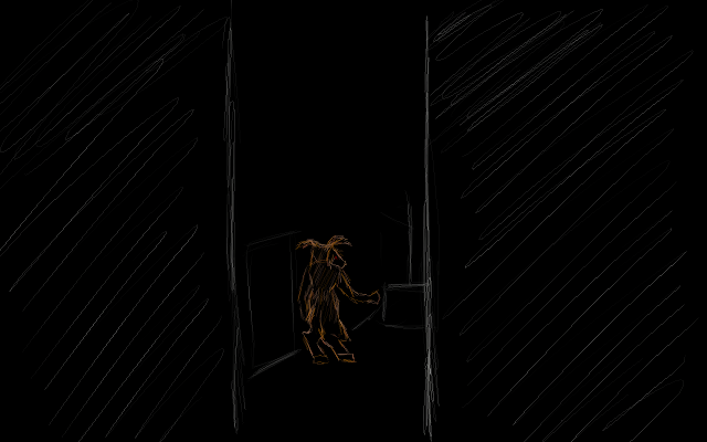 The hall is where she is not supposed to be. She has been in the hall before. The Things take her. They take her places through the hall. To places. Sometimes the places are green. Sometimes they are pain. Sometimes the places hurt her.