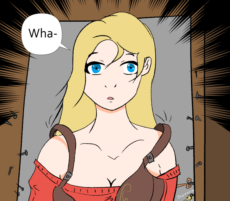Sabotage vote: Rocio uses her fairy dust magic summon something corrosive to dissolve the nail. It's slow reacting, so while the nail is in the process of slowly dissolving, she'll lace up Serah's corset...