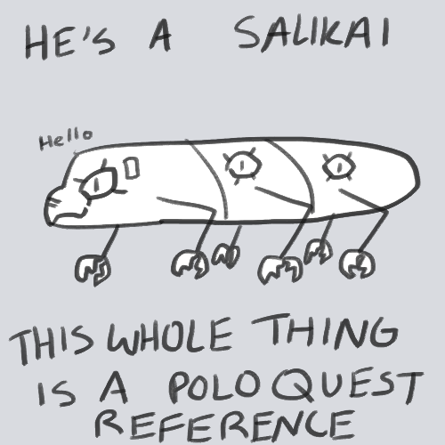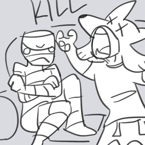 You work perfectly together. It’s so beautiful you cry. Caesar tries to escape by splitting his segments apart and having them run in different directions, but that just makes his squishy insides more vulnerable to bullets. Once all of his limbs have stopped wriggling, you sling Normal’s arm over your shoulder and drag him back outside, Guy following meekly behind.