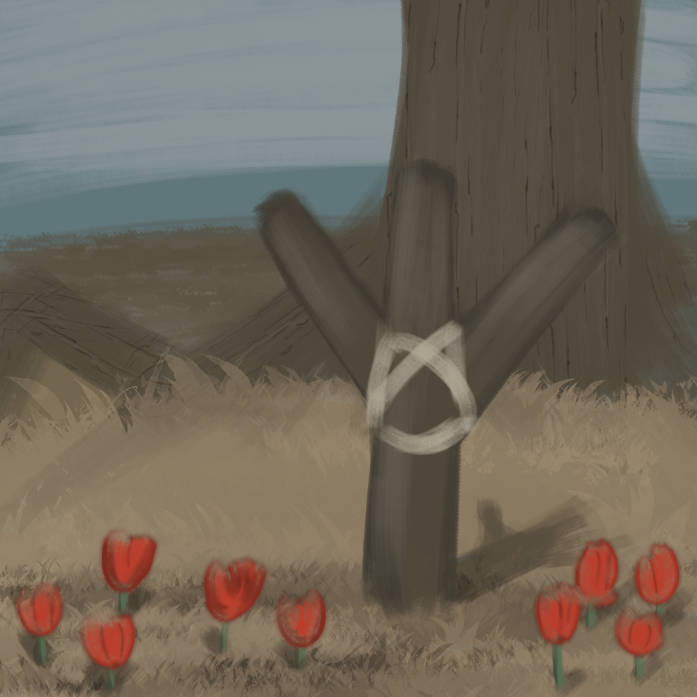 Yet despite the state of things, someone has managed to plant a tree and some red flowers here and is tending them well enough that the latter lives - unless they're fake - and that'd likely be Mnemosyne. These red flowers are the very ones seen during the date in Armintell's reconstructed memories and should carry significance to her. Don't mess 'em up, in other words. Or apologize if you've trampled some.
