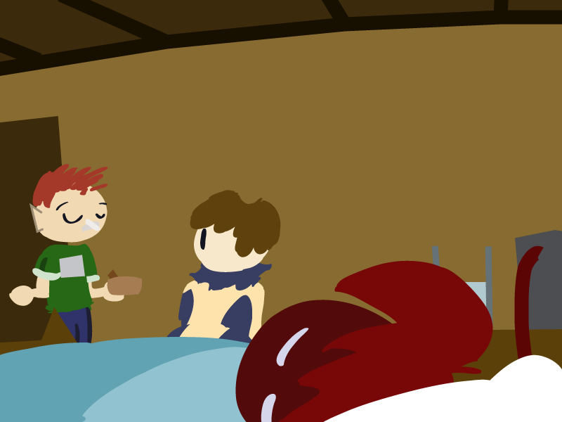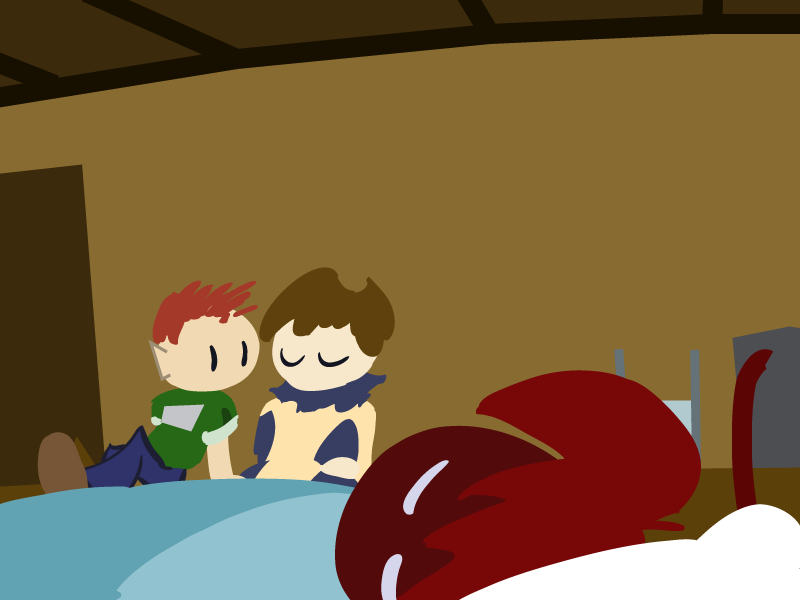 Basically, when I arrived I brought her to the church. Sun tried to do something for her, Miss K tried to figure out that box, Manuel allowed me to bring her in... that's why she's in my bed.