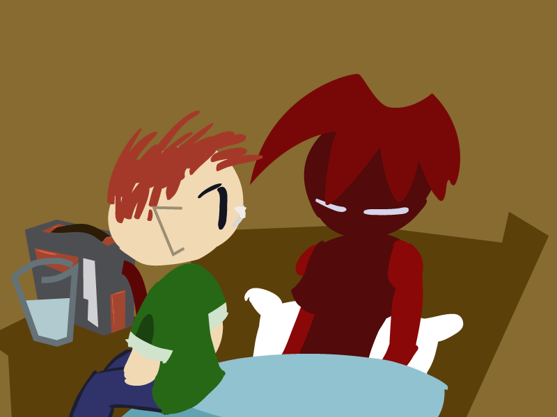 Yea, we're sitting her. In case she wakes up or pukes blood. Or both.