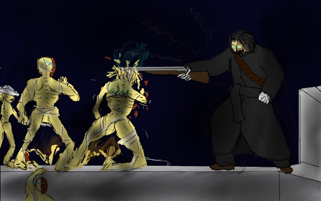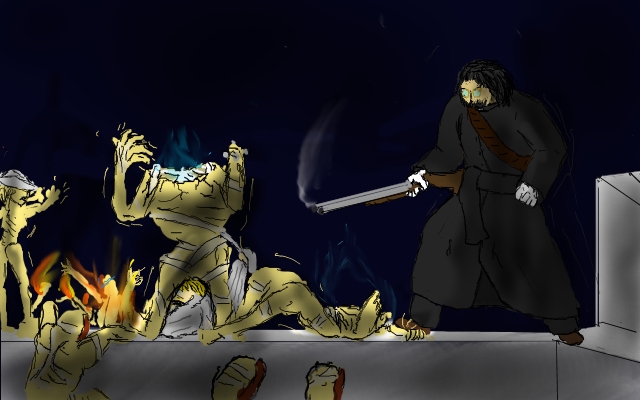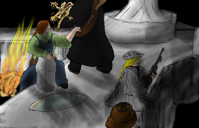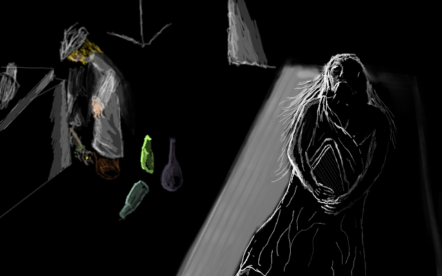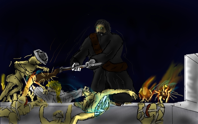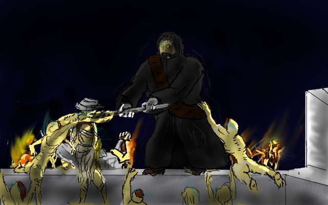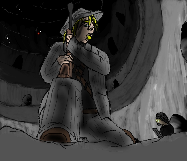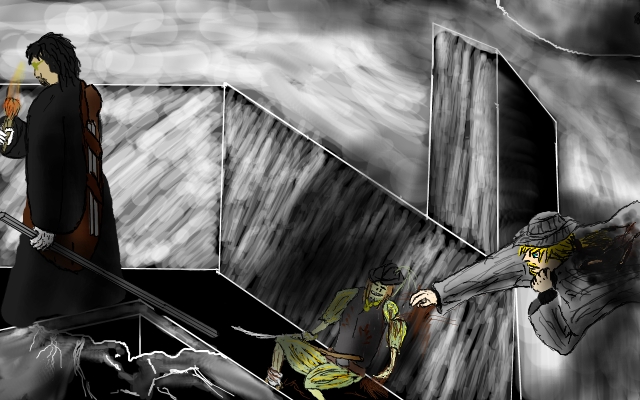 Yes, yes of course, I must help him. I pass Clara the torch and go back.