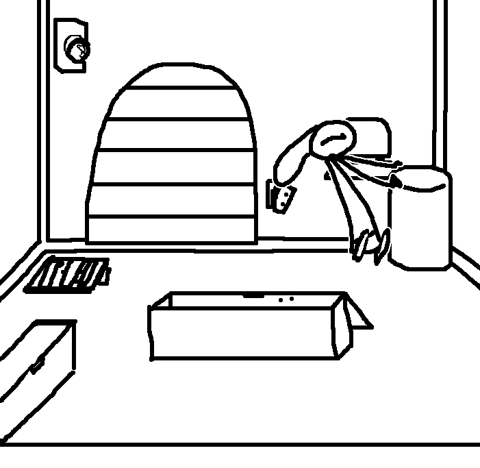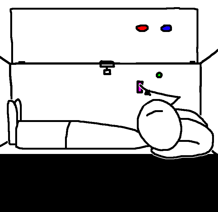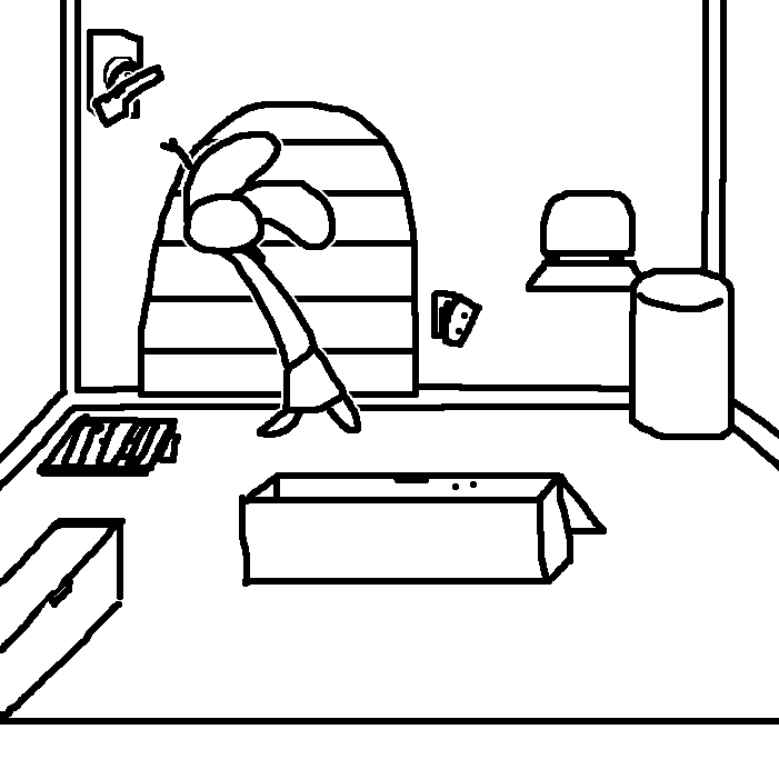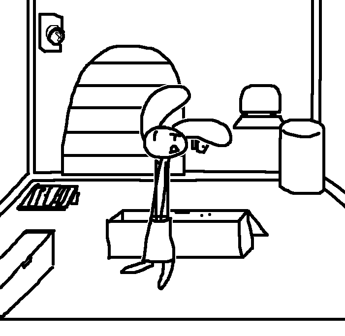 Stay there, then slooooowly sit up and hands-first, pull yourself out of the box.
