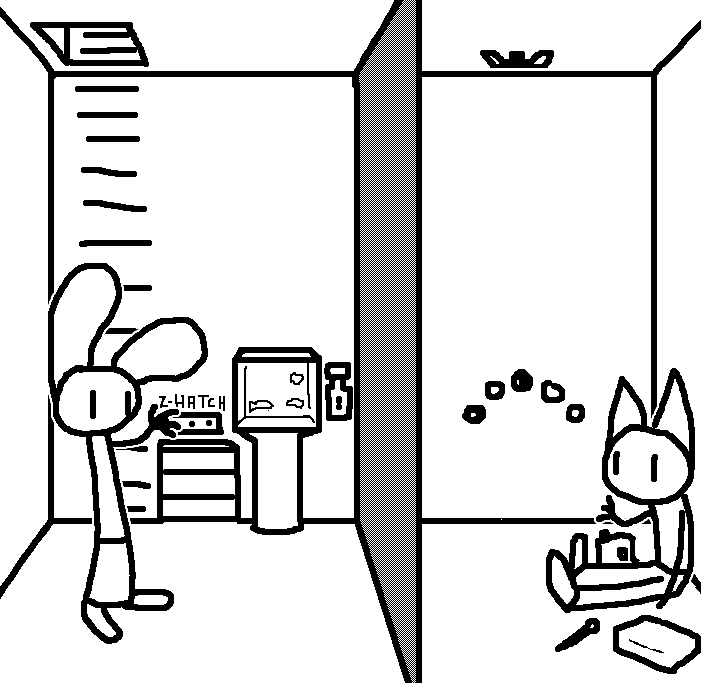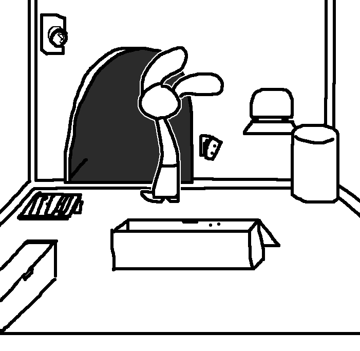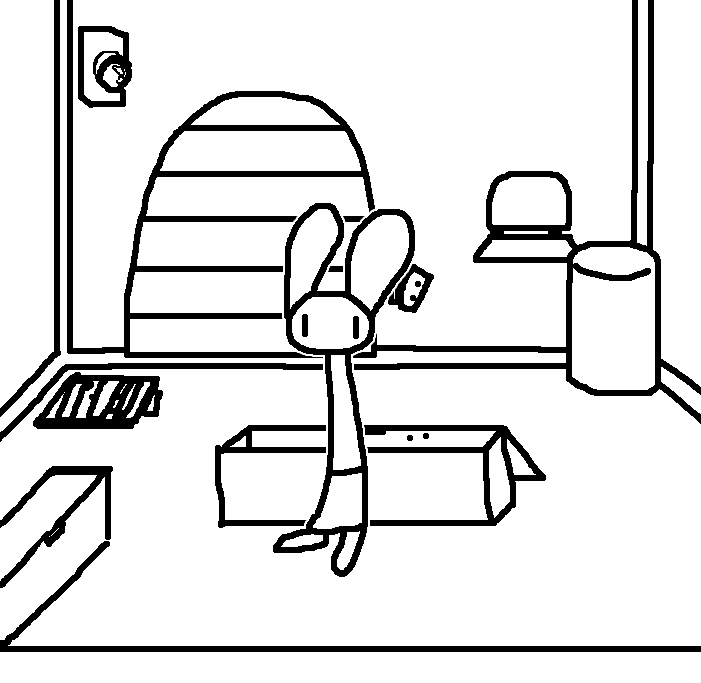 Pearl jumps out of the box ready to defend herself, but there's no one else around.