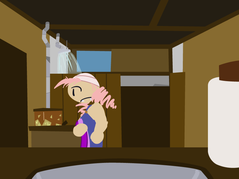 she is showering. everyone forget the last pic. lets not derail this to the fact she keeps toys in her bathroom for her entertenaiment.