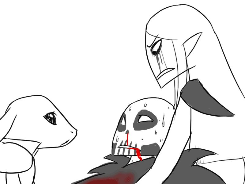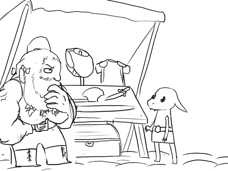 Seeing the effect it has, Mudy takes another breather. Raital's eyes remain fixed on him; cold but curious instead of fiercely hostile.