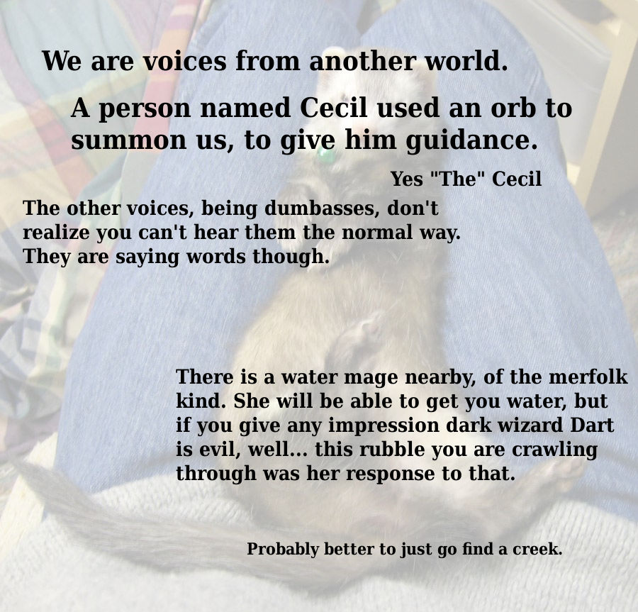 Cecil is currently female, and knows Elemental, Alchemy, and Soul magics. He's a Magi too, now. We currently plan to have him create a circle of magic focused around changing the natural form of things - that would let us cure ailments that are intrinsic to the person, like blindness, deafness, muteness, deformities, brain and heart disorders, and almost anything else that healing magic can't help. Would you like to help his research?
