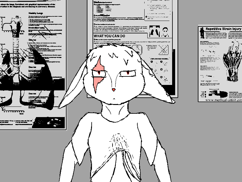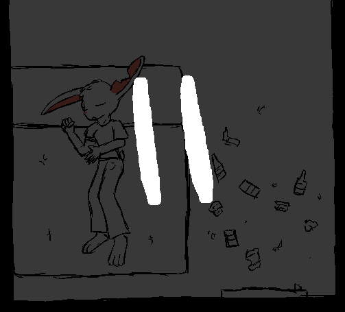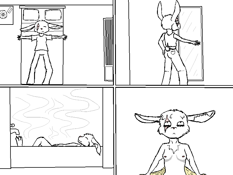 Her body tenses and spasms, a shrill warble erupting from her throat as she reaches her peak, hot nectar rewarding me for my efforts, her flavor tangy and tart. She rests against the wall, leaning back as her chest rises and falls rapidly as hormones clear from her head, leaving her giddy and dazed. I lap both of us clean, licking my lips as I rest my head upon her abdomen, lazily rubbing at her thigh.