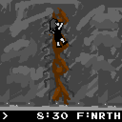 >I don't have anything to throw... despite my blades being rustproof, I could lose them too easily. There's nothing else on these cliffs besides this one vine-root-thing nearby, and it doesn't seem to lead anywhere either. To the west, rocks only all the way.