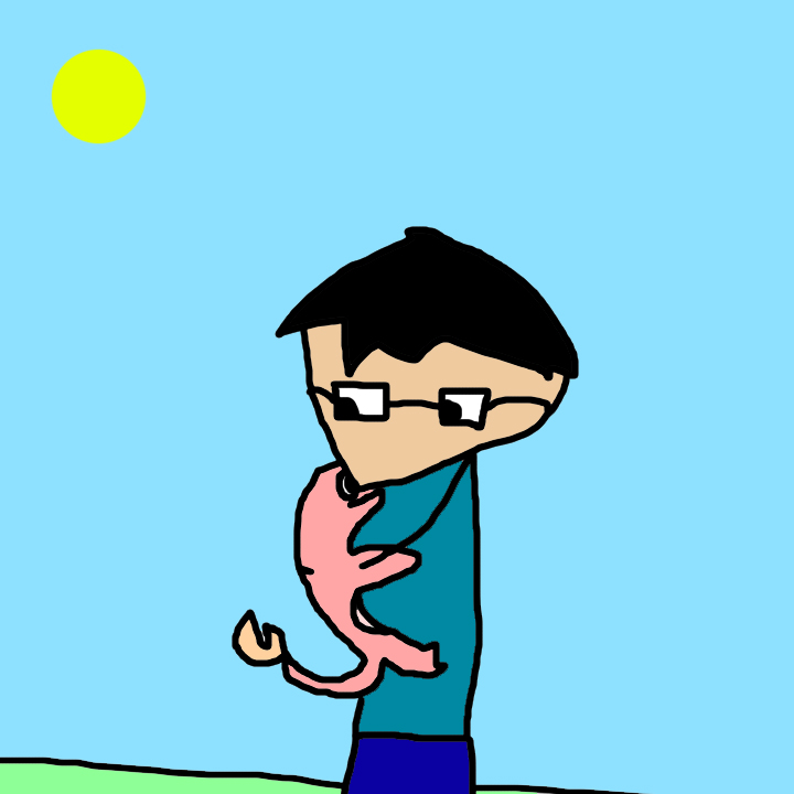 He seems like a depressed uncreative nerd, use our tail to light him on fire.