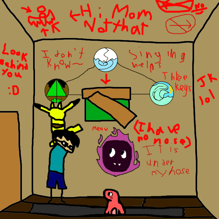 So, we basically confirmed my suspicions, there are three keys, each connected to the symbols. The cave supposedly contains some sort of powerful tool that was sued to make the world, and it'll grant peoples' wishes! The symbols are Land, Sea, and Sk-.