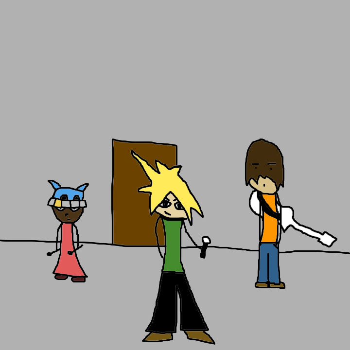 "Aha, what have we here? Intruders, in our employees only section?" interrupts a voice. We turn around to see... the crappy band whose names we do not know.