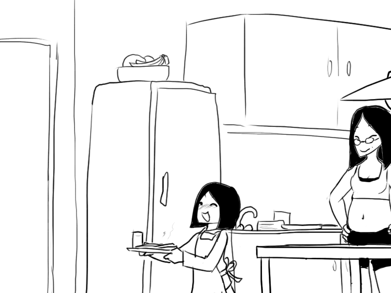 Okay, so, uhmm.. Mom will go into the computer room later, so then I can go watch the movie, but she always keep the door open.