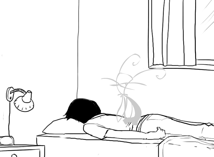 >"N-no no, that's fine. It's cool and quiet here, so I think I'll stay a bit longer."