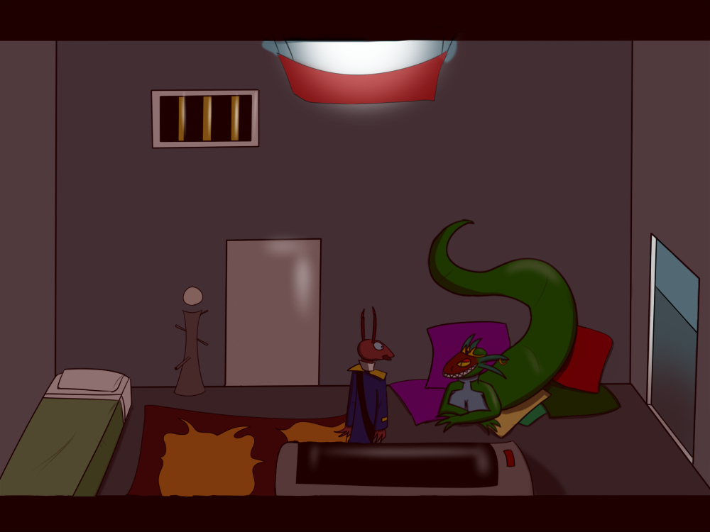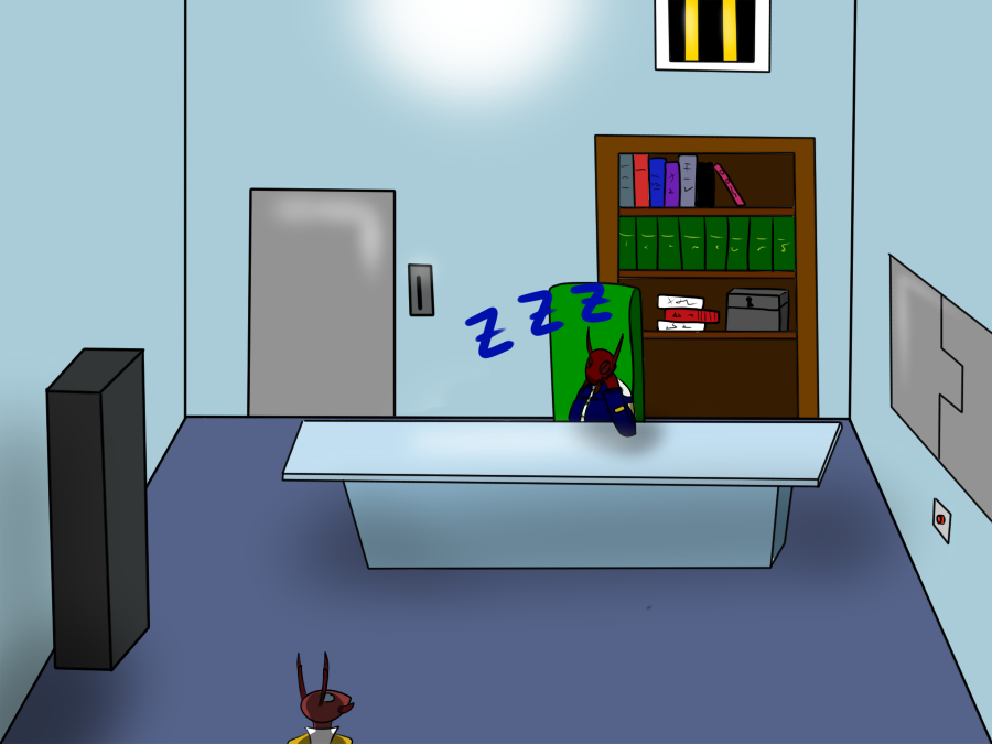Tiak goes into the captain's quarters to ask about the current status. Doesn't seem like much is happening, the captain seems to be asleep! Quite noisily too.