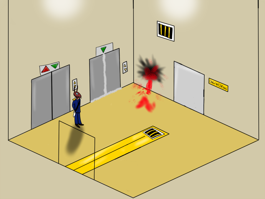>I didn't see anybody, because I haven't even been at the scene of your defeat. I finished analyzing the corpse and looked for Mogro, the Eng. assistant, to put the body in a better place, but I couldn't find him in Engineering. Half an hour later he came to my office carrying your wrecked body, saying that he found you unconscious in the Crew Quarters. He didn't mention anyone else.