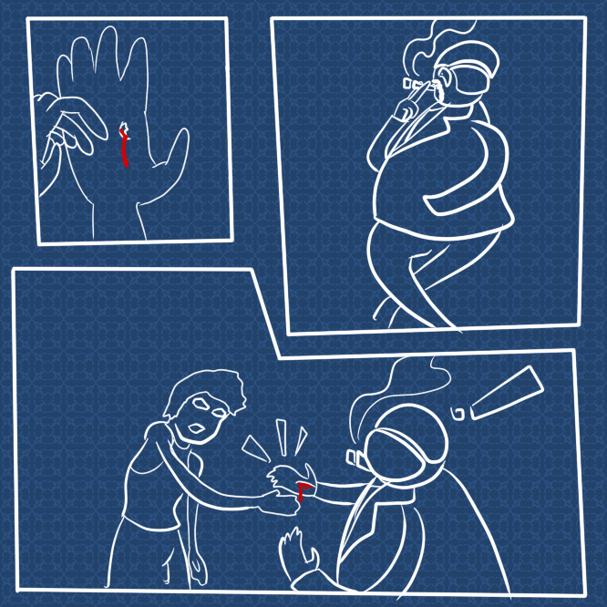 The explosion comes faster than I can move. The burning pain tells me that I am injured far more than I ever wanted to feel, but I do not look at it. I drop the Revolver. There's no point to it anymore. All I need is the rifle, if I can just crawl there in time. I clench my teeth so hard that I draw blood inside of my mouth. I'm almost in the room.