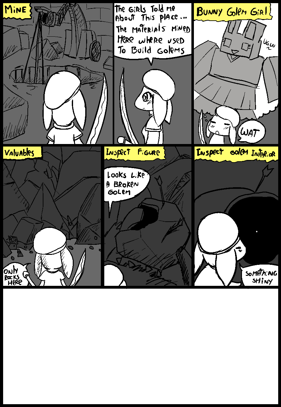 thanks for the exposition. us voices met the great golem king. he told us that with his death the tower would weaken, he gave the bunny girl the golem powers. and then when she left, he died, glad that he could do something to help. father probably wants to die too, to weaken the tower as well, but can't until he is sure his children are safe.