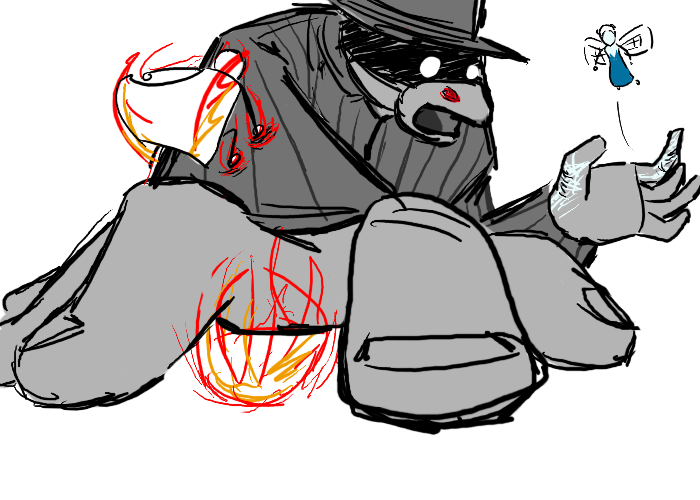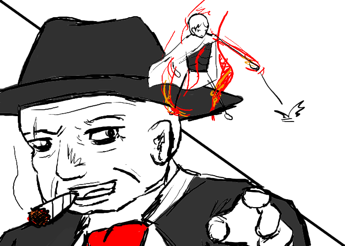 I think what we need to do here is decide upon a theme cause. We have our flame, black, and general trolling for how we look and act; what we need beyond that is something that we villain for. Something to drive us (at least in our villain character, even if we don't actually care about it), something to plan new operations around.