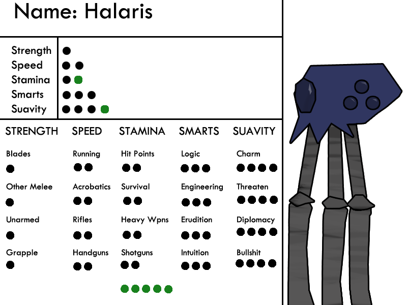"The loopy moon gods the Reverend worshipped saw fit to grant him two, Pribicevic," says the Captain. "I see no issue. Que sera sera, I suppose. You will be the Face of my operations, and on most missions will go with an armed guard or two to handle the frivolous shit while I do the fun important exploding jobs. Oh, and apparently you're trained in seduction and subterfuge and such so maybe I'll use you as some sort of weird Space Squid Secret Agent while I'm at it. Do you have any questions about your new life, Diplomatic Liaison? Because I need to get back to blowing this pirate vessel open and then me and some other guys are going to go board it and kill everyone on it because that's my job because my parents weren't nice to me as a child."