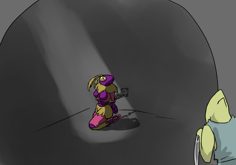 Spikesby peeks in to the Fucknasium. Flails isn't here. Now that he thinks about it, the main corridor was dark before, and no sounds came from there. Flails is probably at the end of it.