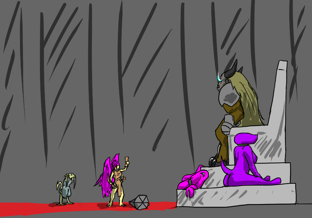 Sending Ria far away in the jet beforehand and you know not claiming entry but an audience with Flails outside would be nice. As to what we could possibly tell him that would be so important to him dignify us with his presence tell there's fighting to be had. Big fight with a proper opponent. And what Flails loves if not fighting and fucking. I don't know in which order but there you go.