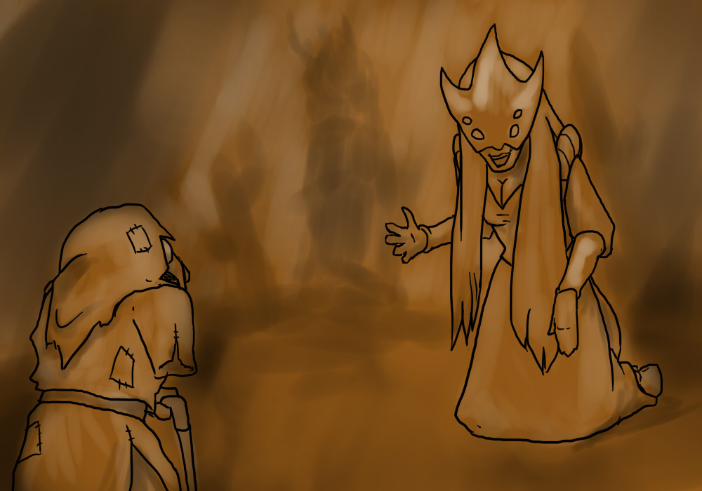 Several decades after her Ascension a lone, crippled Gour found his way to her tower in what had once been the Desert of Ruin, still wearing one of the masks that his kind had forsaken ages ago.