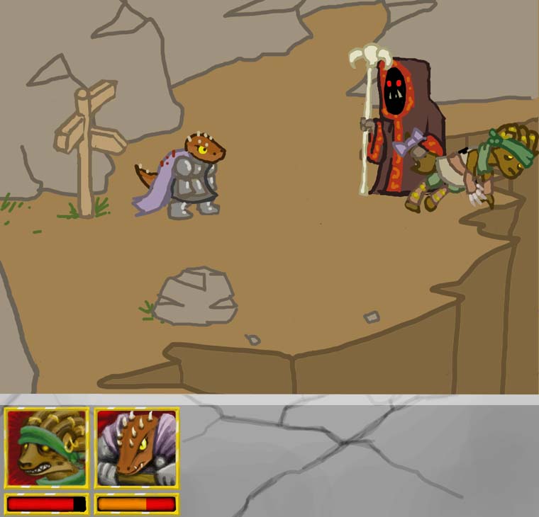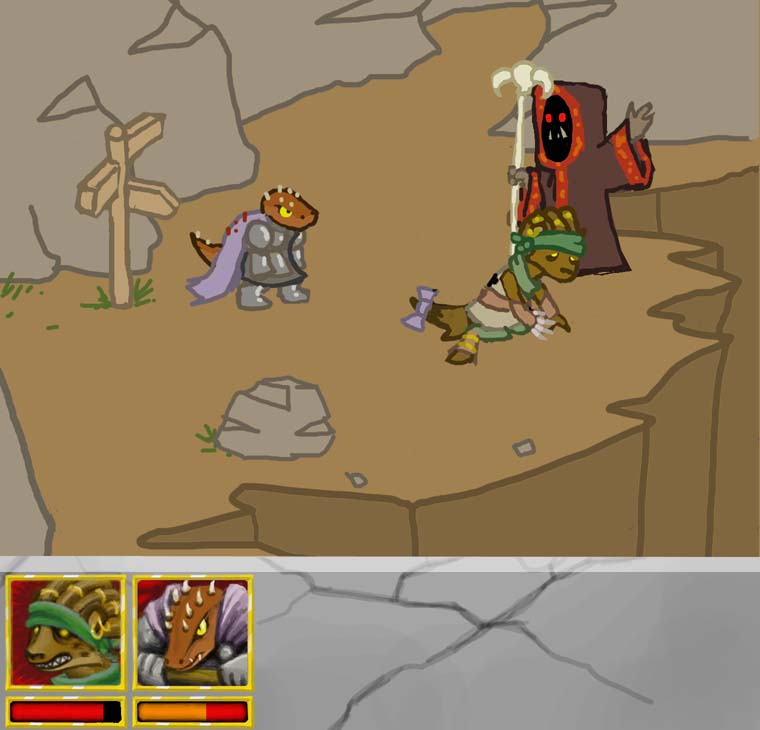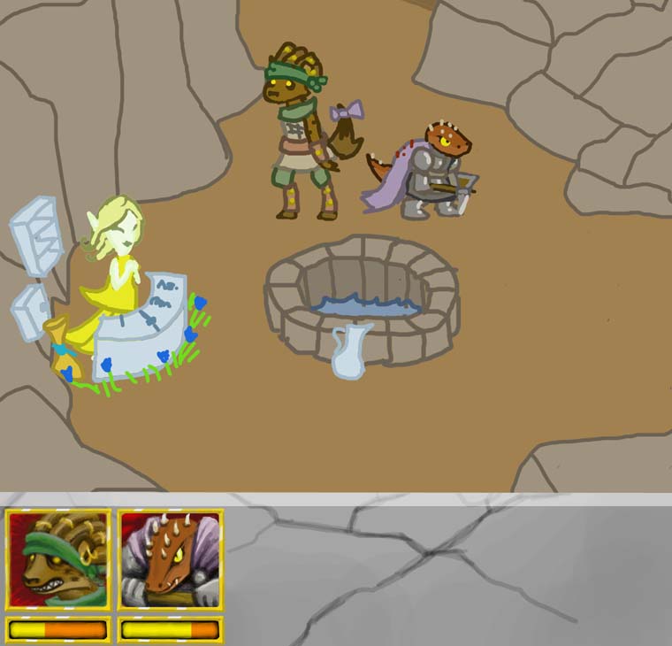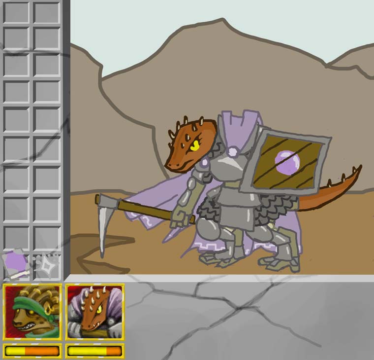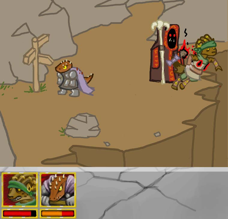 ...um, ow. We should probably heal Gando. Apparently, getting a kobold knight thrown upon you hurts.