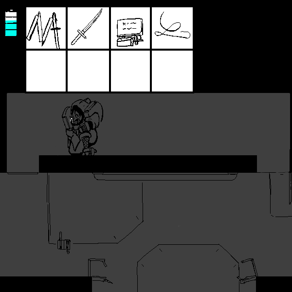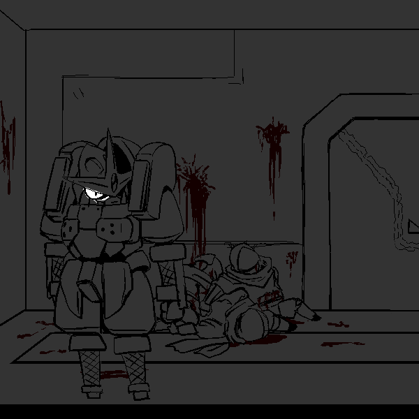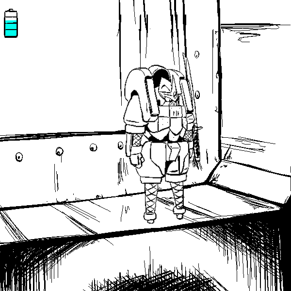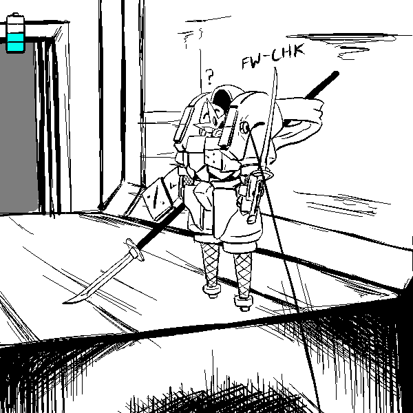 I am the Mark 4 Ninjutsu Operations Bionic Infiltrator, designation "Manewis." I am, to my knowledge, the sole survivor of Momotaro Unit, a special infiltration unit tasked with entering Onigashima and destroying it from the inside. My role was Fire Support. I am equipped with a COLLAPSIBLE NAGINATA, a forearm mounted KUNAI LAUNCHER, Shoulder mounted SHURIKEN LAUNCHERS, SHORT RANGE TELEPORTER, PERSONAL CLOAKING SYSTEM, on board MAP, and COMMUNICATION SUITE. Our mission was not successful. 100 years ago this room was to be our last stand, but through the prolonged fighting, I found my POWER CELL depleted, and was forced to enter a dormant mode to conserve power. I was unable to help Yamazaru, Inu, and Kiji as the demons broke in.