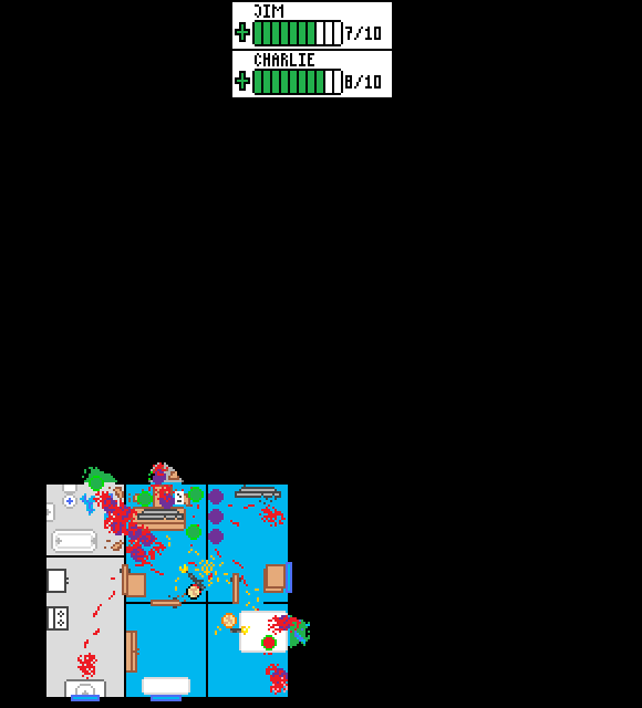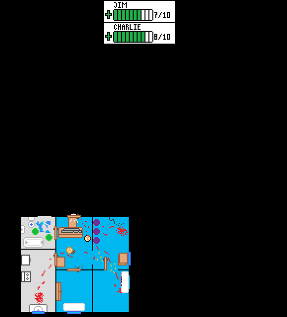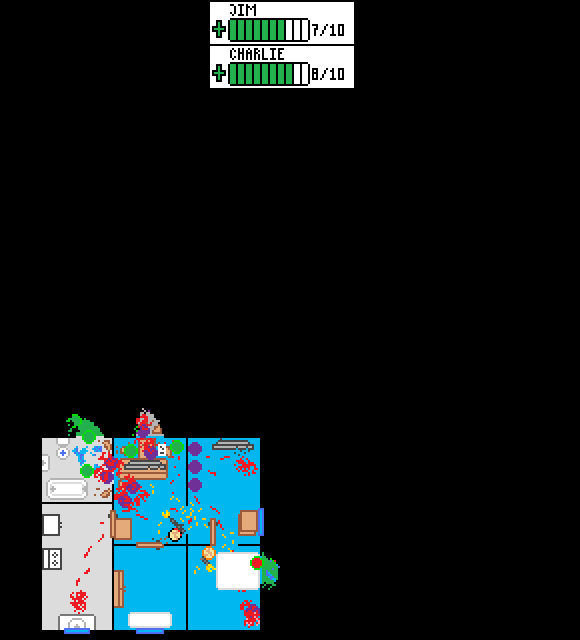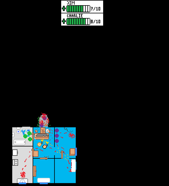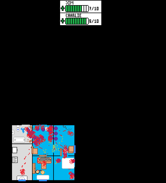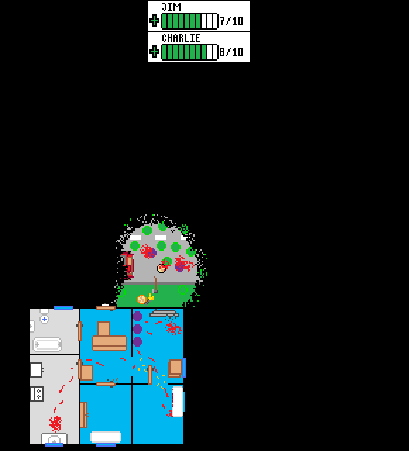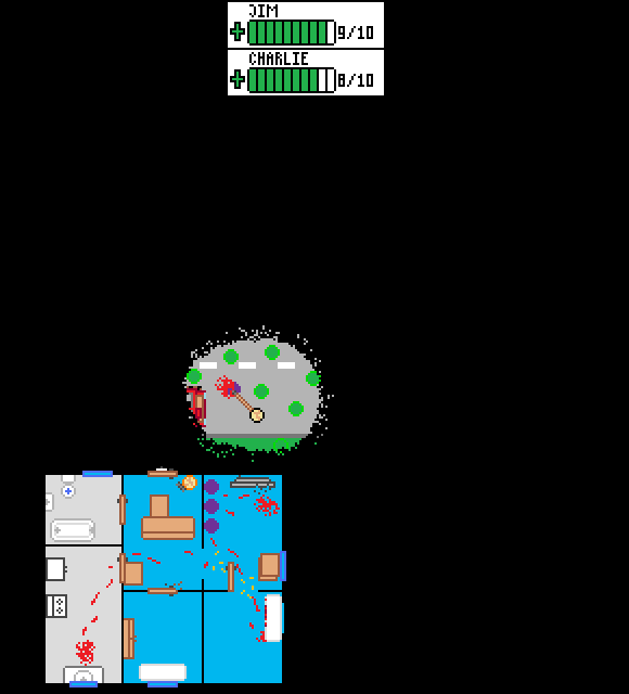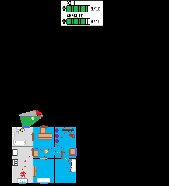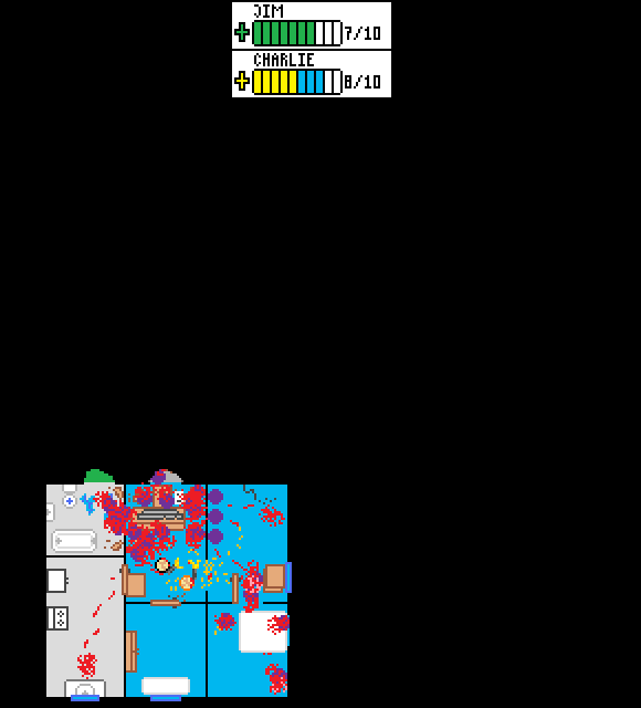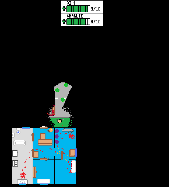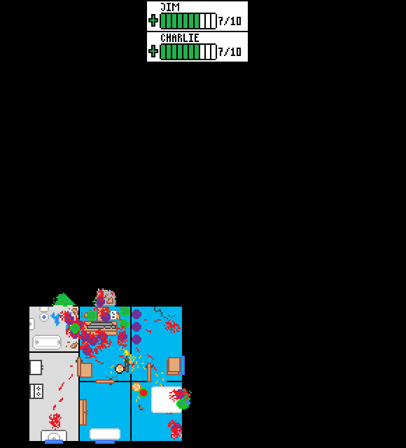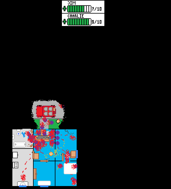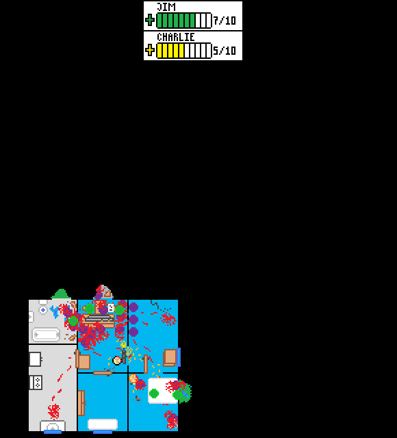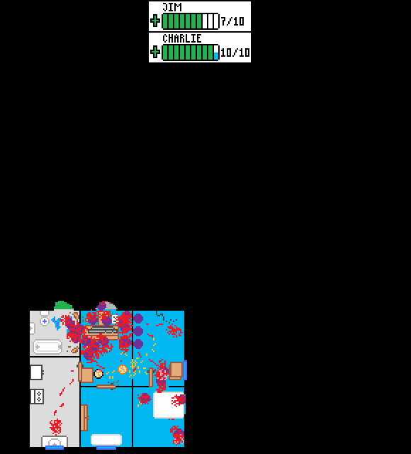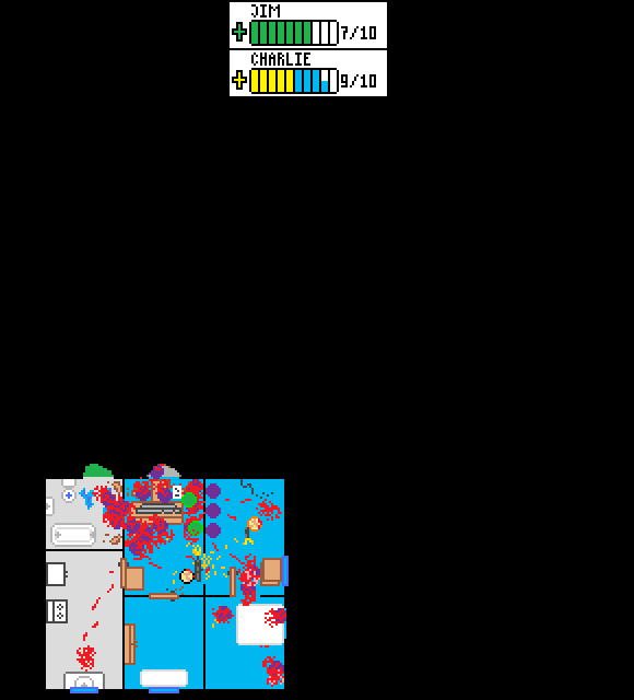 >Health (Jim): 7/10 [Axe][SMG-0/15][Grenade x1][Pistol-5/15]