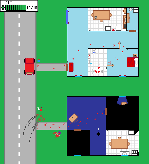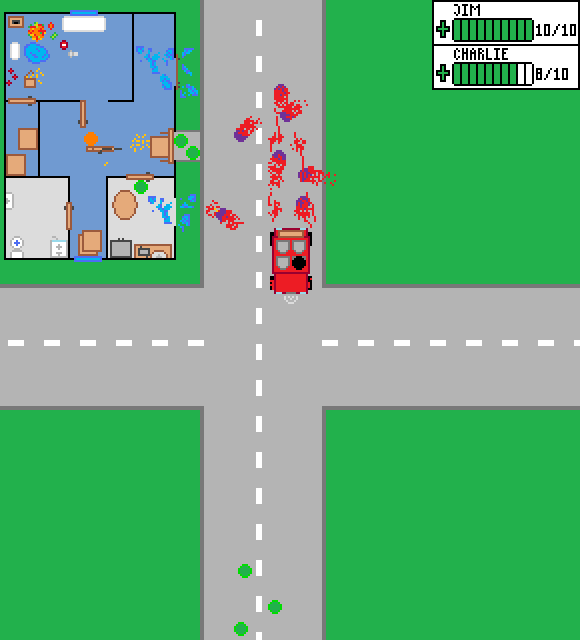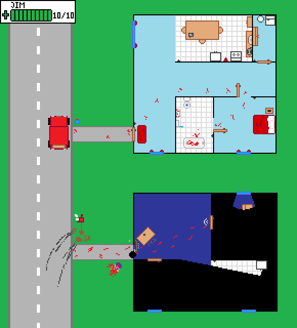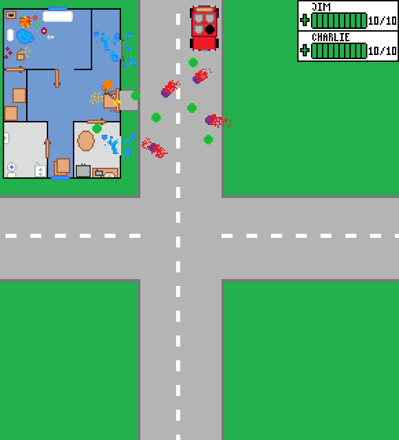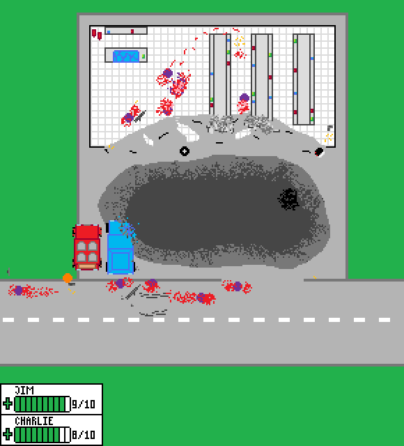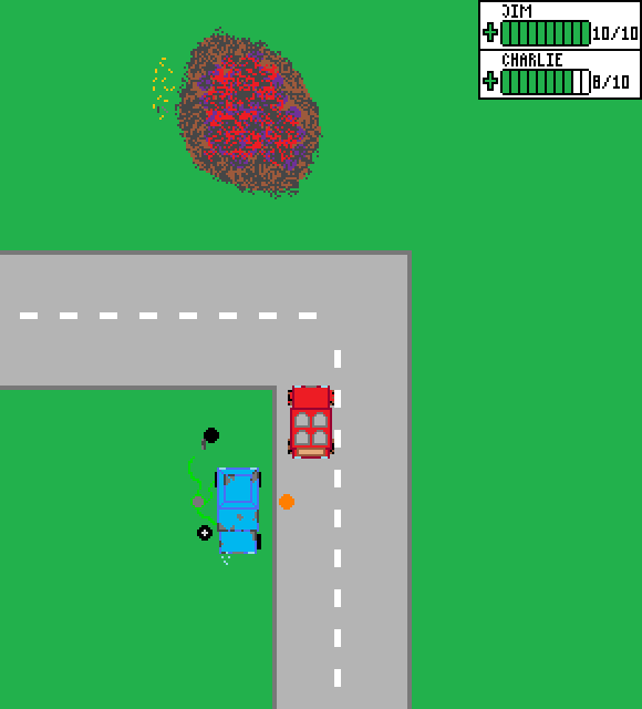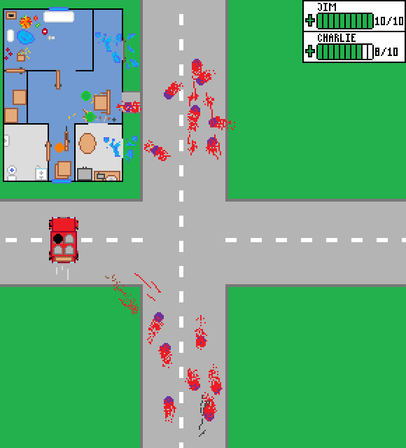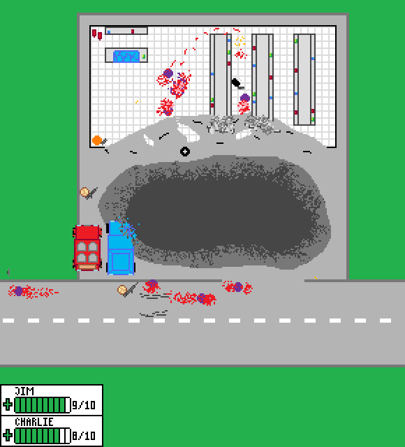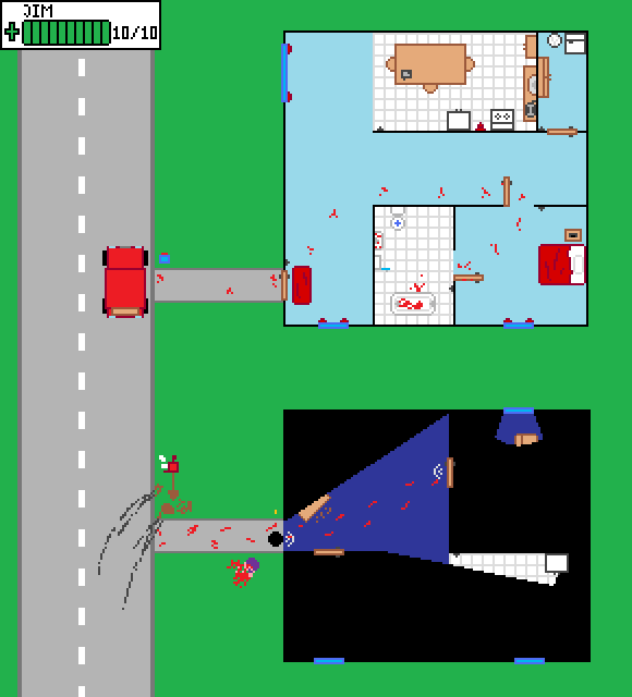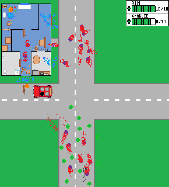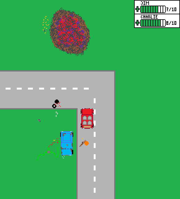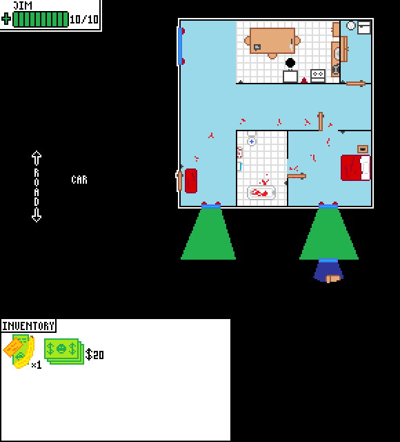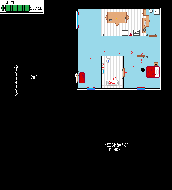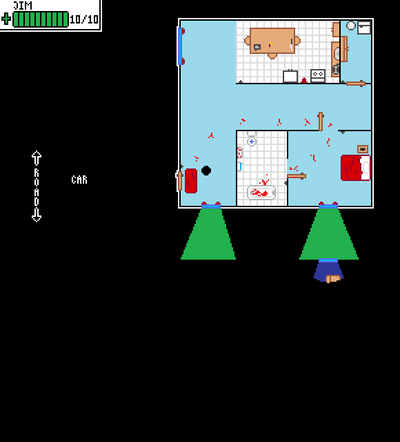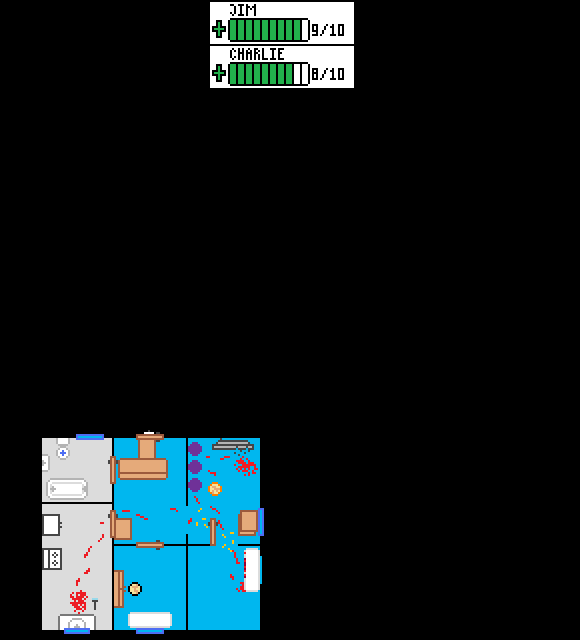 >Health (Jim): 7/10 [Axe][SMG-0/15][Grenade x1][Pistol-5/15]