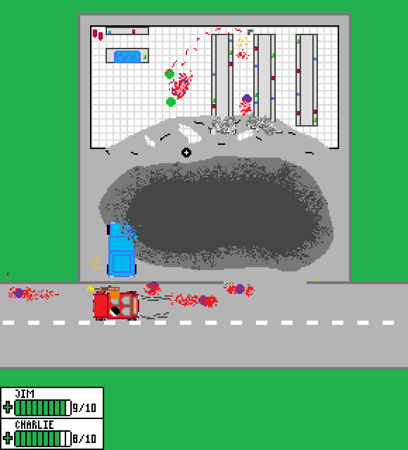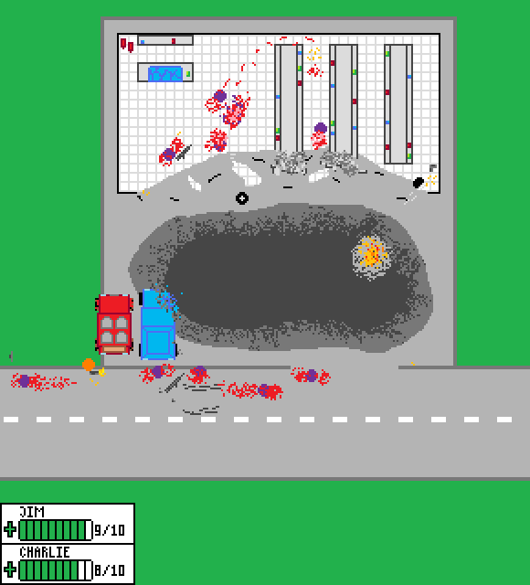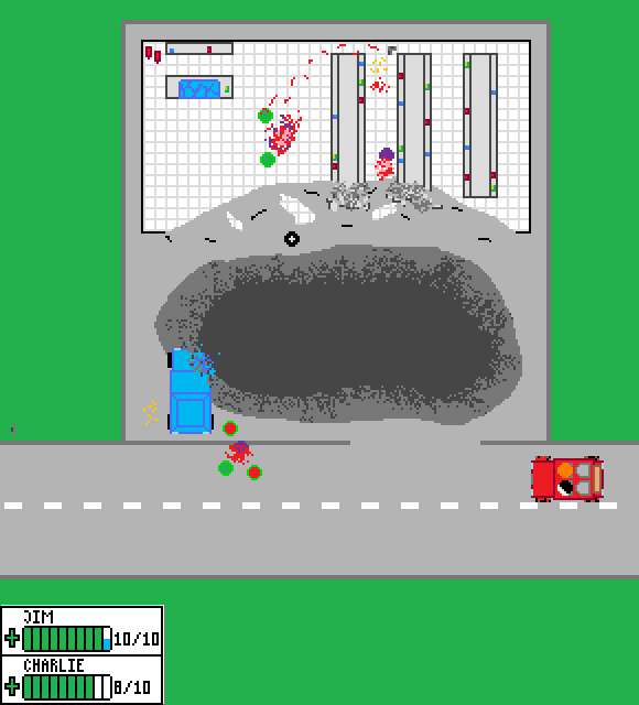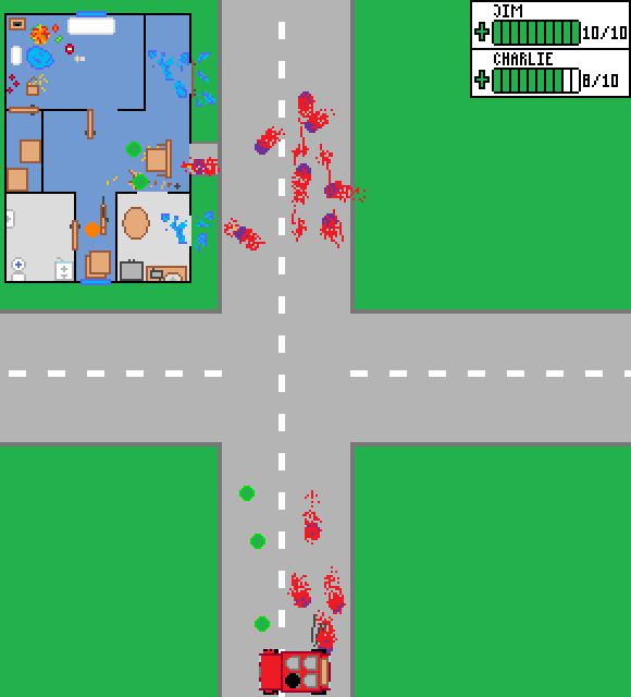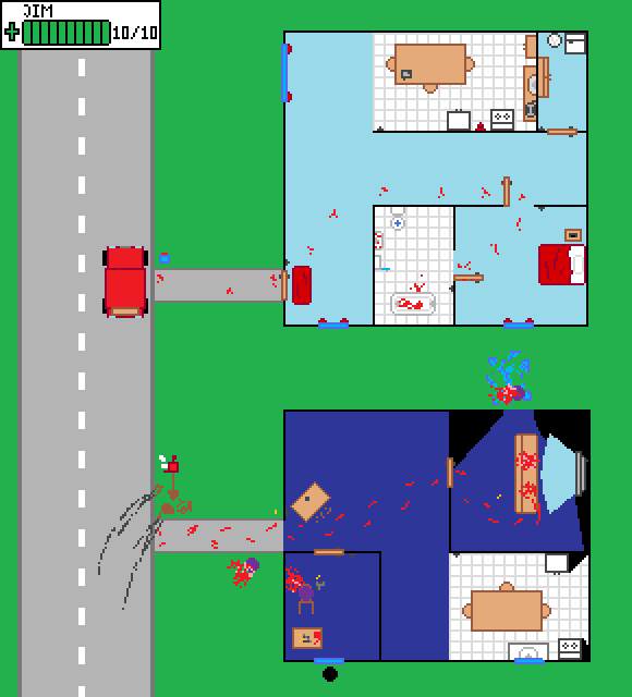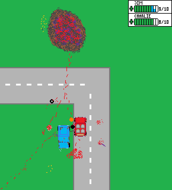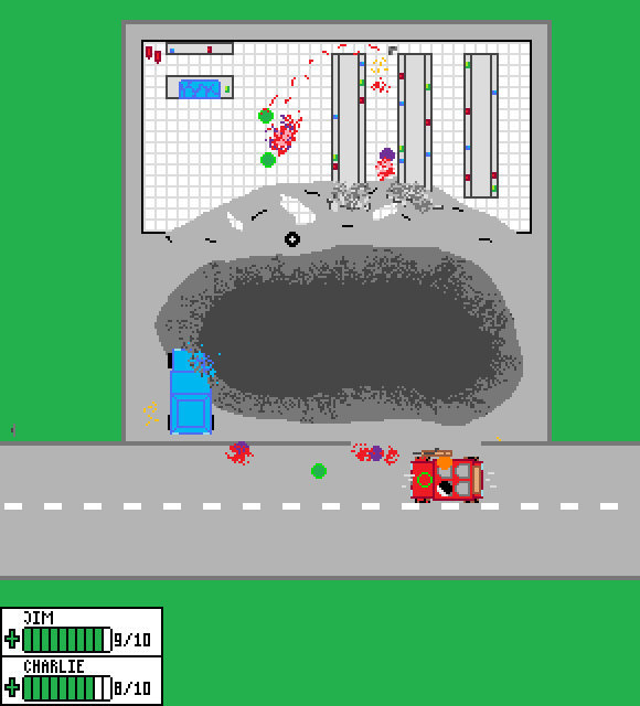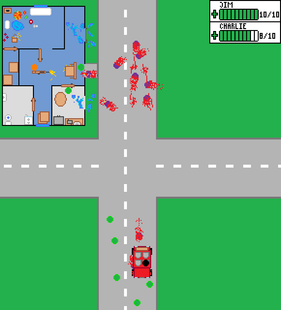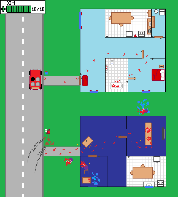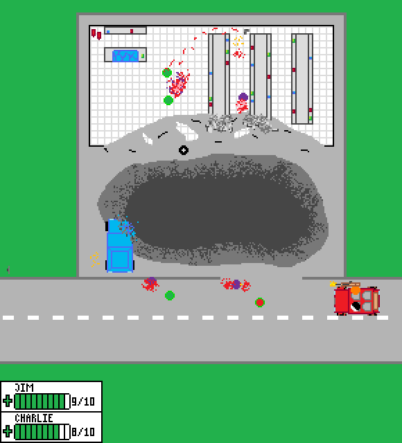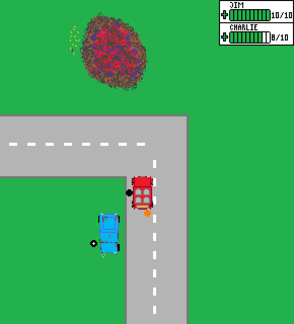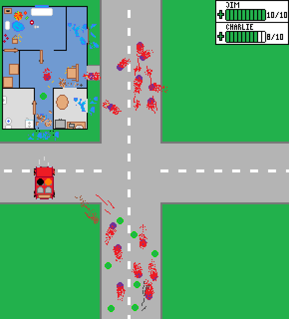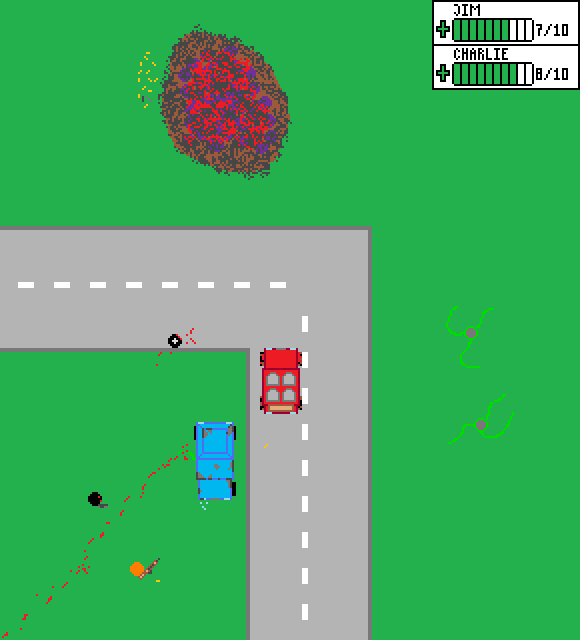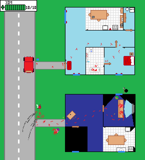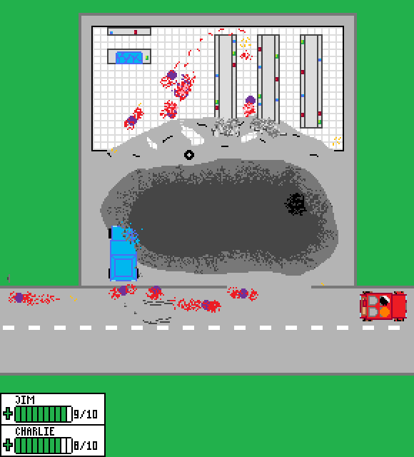 >Health (Jim): 7/10 [Axe][SMG-0/15][Grenade x1][Pistol-5/15]