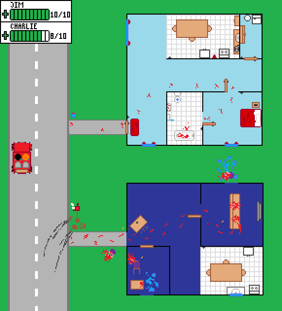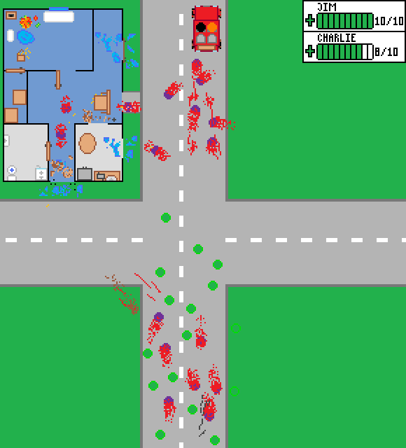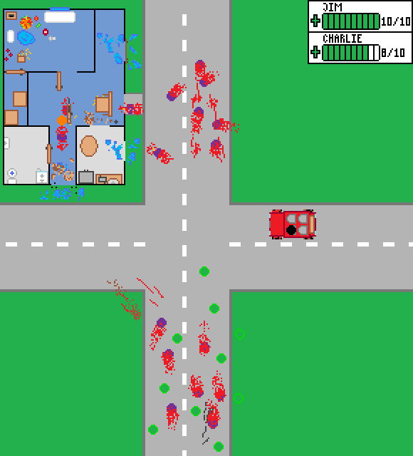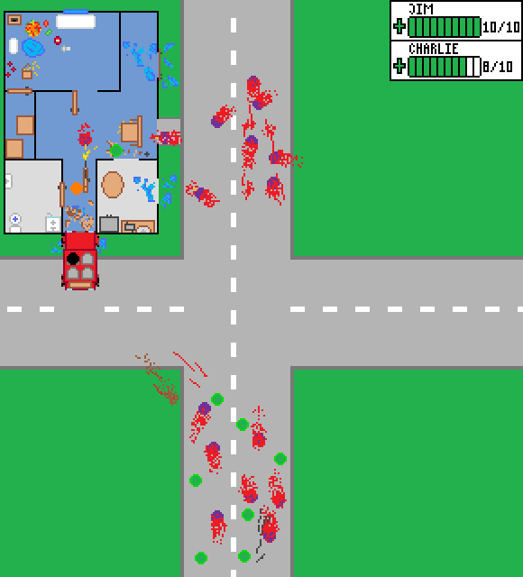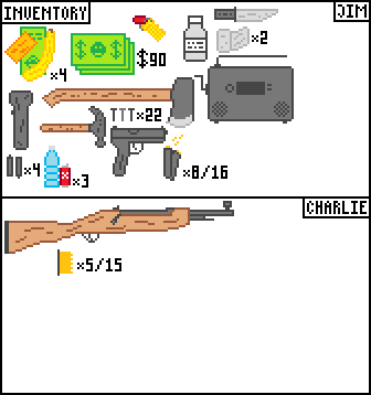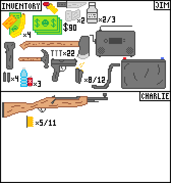we can worry about ammo after we deal with horrible injuries. also, it's almost time for the sit and wait of destiny. both bandages on charlie, since jim is gonna go zed.