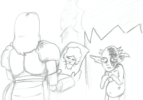 >If you haven't noticed, Ath is a changeling. Blessed, or cursed, depending on your view, with the ability to alter his appearance at will. Not with a spell or incantation, but simply by observing another being. It's a special, unique gift that, by your own code, Miss Shylton, marks him as a mutant fit for execution. Ath tries to hide it, but when emotions swell up he sometimes can't control it, and experiences an unexpected change in appearance. When the innkeeper at his town discovered his true identity, he blackmailed him, threatening to reveal him to the town and condemn him to the same fate he had faced his whole life. He would be Persecuted. Prejudiced. Threatened. You see, Ath was... tired of the threats. He wanted to stand up for himself, but no matter who he became he simply lacked the backbone to retaliate. And that's where I came in.