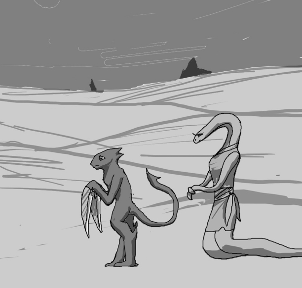 "I gave my arm to Lord Ryxix, you know. I am his adept. I've used his own power to murder his minions. This, this is truly a great offense against the starts. Fate bears down on us like a tidal wave, ready to sweep us to oblivion. How long can we struggle against it before we finally die our pitiful, worthless deaths? My name is Heartsbane, by the way, and this is Llewin."