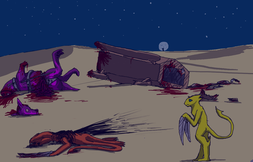 They get to the wagon and pick up supplies, including a Ravian Assault Rifle, and then head back to the Oasis. Everyone is exhausted and wounded, and he can explain what happened to Ria later. Now, he just needs to sleep.