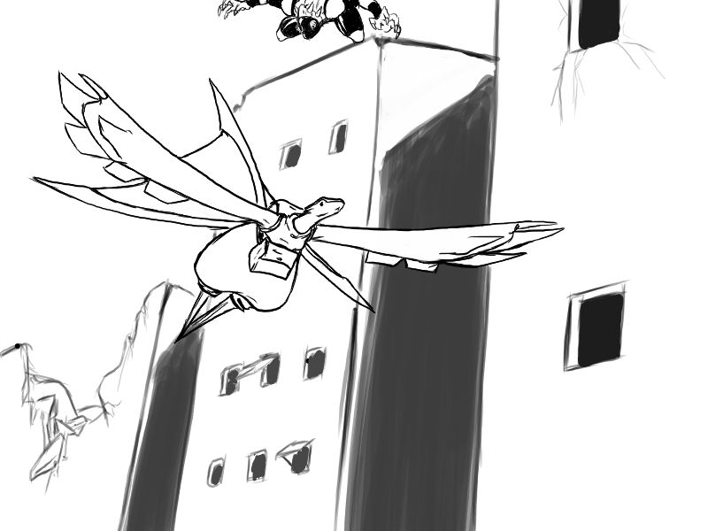 I think you've forgotten how strong Tav is (remember that unbelievably heavy gear he carried around /everywhere/ and how fast he moved with it?), how weak we are (lol bird-like structure, hollow bones), and how incredibly pissed off Kyaos is. We will get stampeded and the epic fight will ensue with us face down on the floor in pain with a broken wing or two.