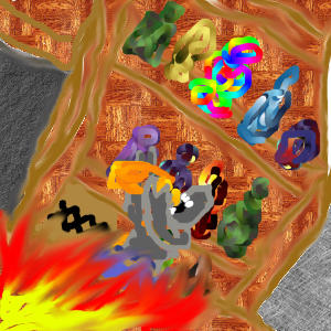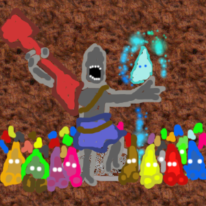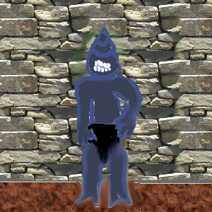 Ask the conemage if he can detect water, we need to blast to an underground river and then blast a channel for it to go down, with it exiting via one of the paths out of the cavern. If there is no underground one available, then find which of the nearby paths leads to a river / under a river and blast a new path for it to divert it to go through the town.