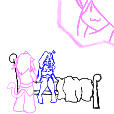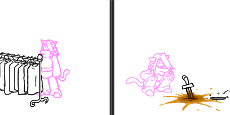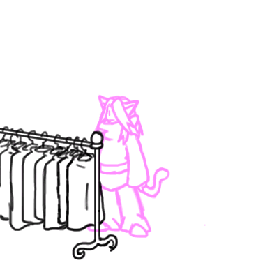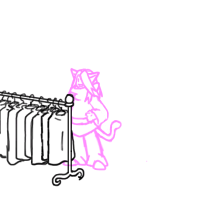 Seems it's not so empty now, things have appeared. On the left, a clothing rack, filled with any number of odd costumes. You could probably dress up as anyone with that selection!