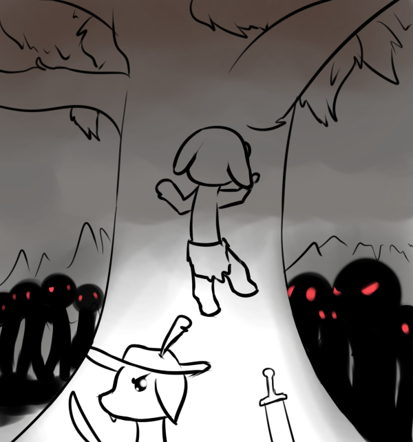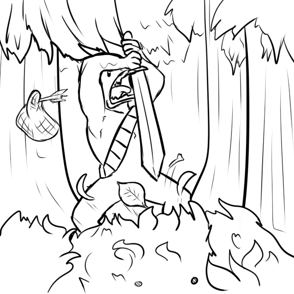 Ah, sorry, I'm really talking all of your ears off! I'll keep the rest short. There's no sigil on the sword, I have no idea why it would be left behind, or who was behind the attack! Maybe it was one of those crazy people with like 7 swords and he didn't care to lose one. Revenge, um.. I'm not skilled enough for anything like that. And for refuge.. I think there's a spot, marked B, that's actually a kobold fortification I heard about in passing. If there's a safe place, it might be there!