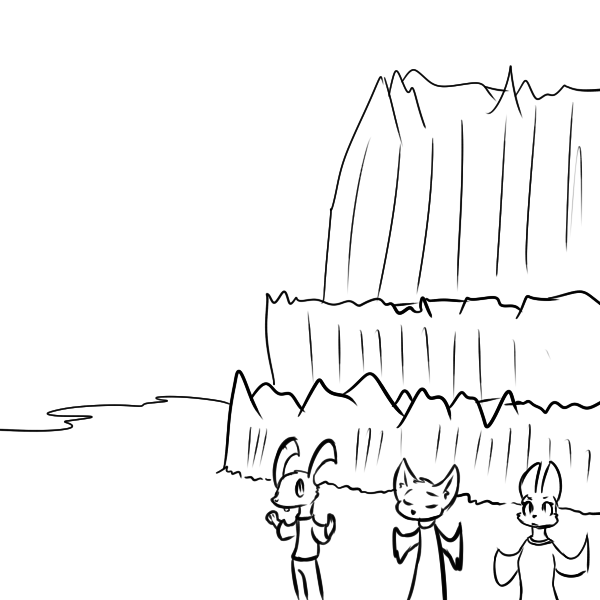 >"We're aware of the zombies, we scouted 'em massing up. So they're after you, huh? Great. Shabin ain't a name I heard in awhile, but a friend of her's is a friend of mine. Th'human town up north already fell, we found out recently. No point in warnin' a man about an incoming sword when e's already impaled."