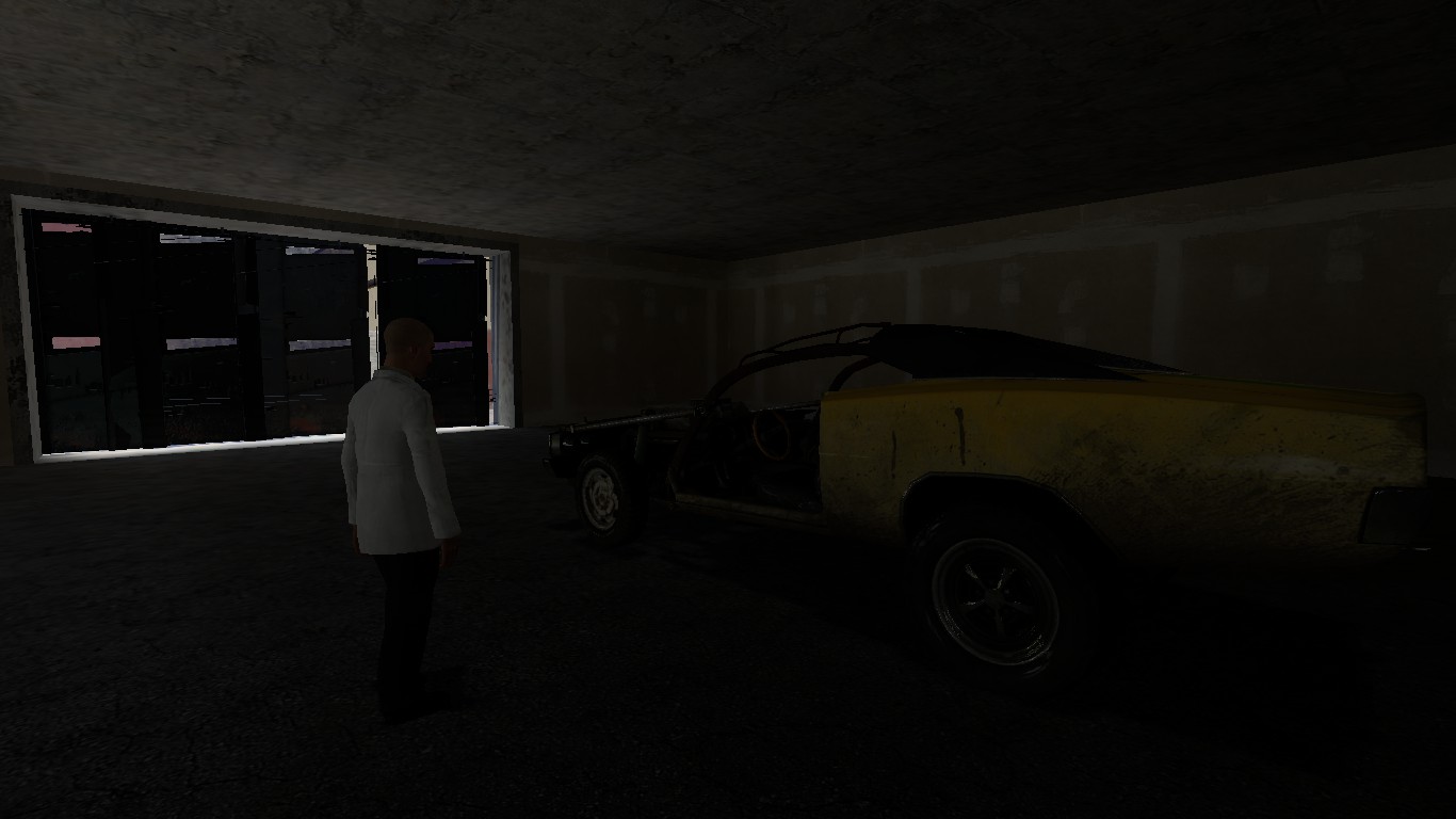 Stan gets up off of the bed and looks around. In the room lies a DOOR, adjacent to a KEYPAD. Also present is a BITCHING MUSCLE CAR. There are two garage doors, but they've been crudely sealed with scrap metal and blast doors.