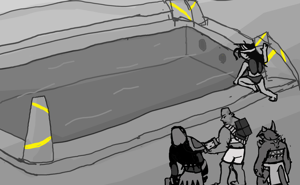 Since we don't have a container to store any in, we should just leave the pool for now and investigate that tunnel.