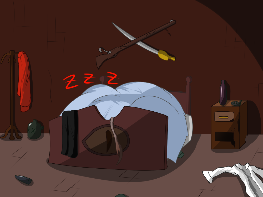 “Ahem! As I was going to say... Your recovery is astonishing, captain. You’ve got two holes the size of a ChickenChoke* ball in your hips. Don’t know what made them, but they should’ve pulverized bones and organs in their way out. That added to the massive blood loss, should’ve been enough to do you over. But instead, you’ve only got but mild hip fractures. If we find a competent flesh wizard, you’ll be up in no time.